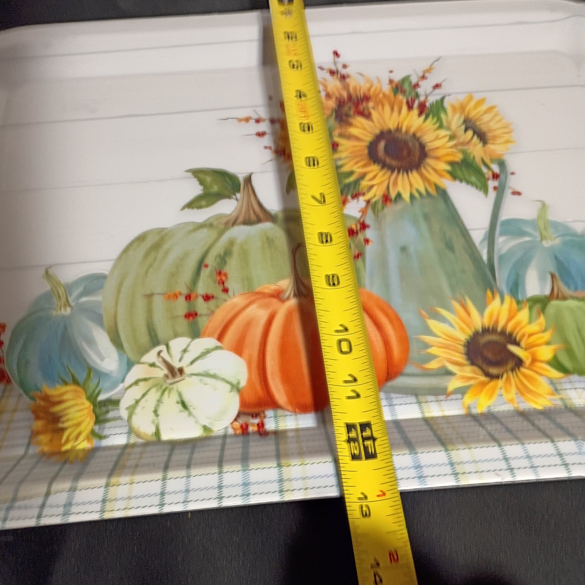 Melamine Serving Tray Featuring Fall Theme With Pumpkins, Sunflowers And Berries (NM)