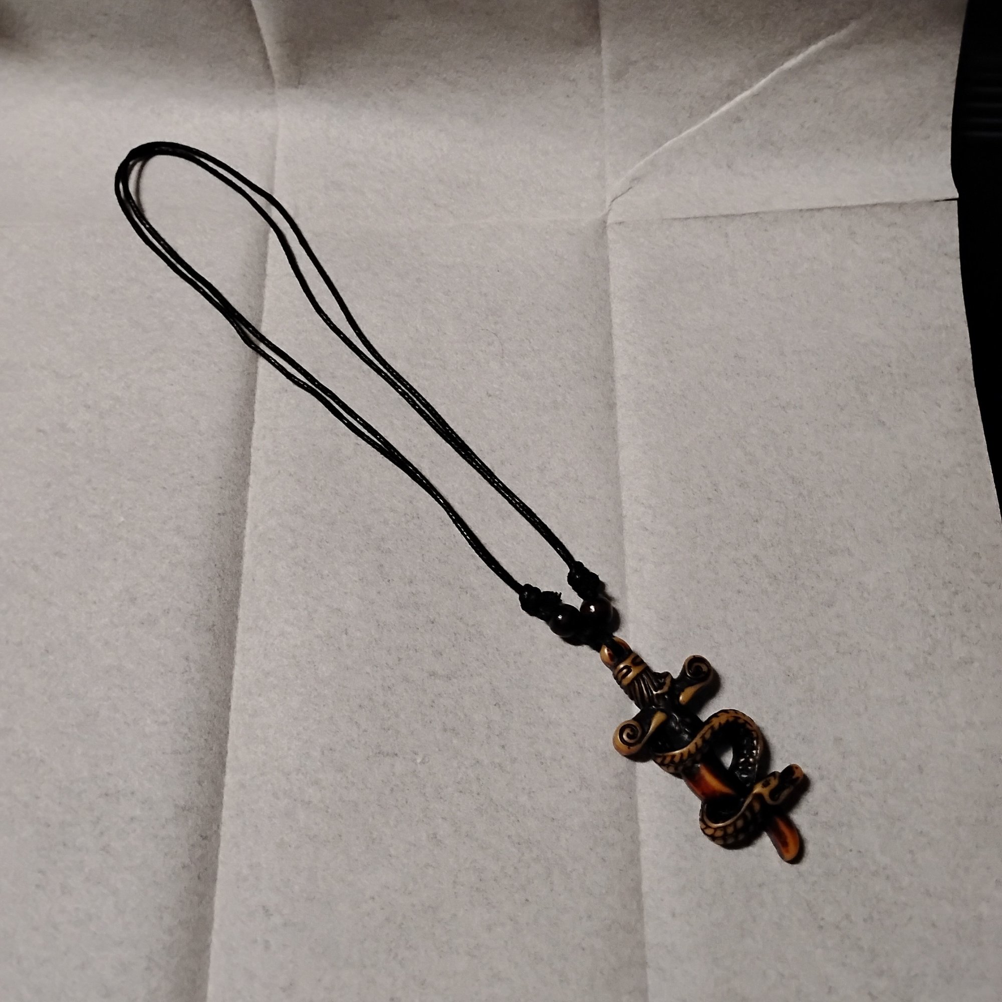 Gothic Style Snake And Sword Pendant Necklace, Crafted From Resin To Mimic Carved Bone Or Coconut Shell(NM)