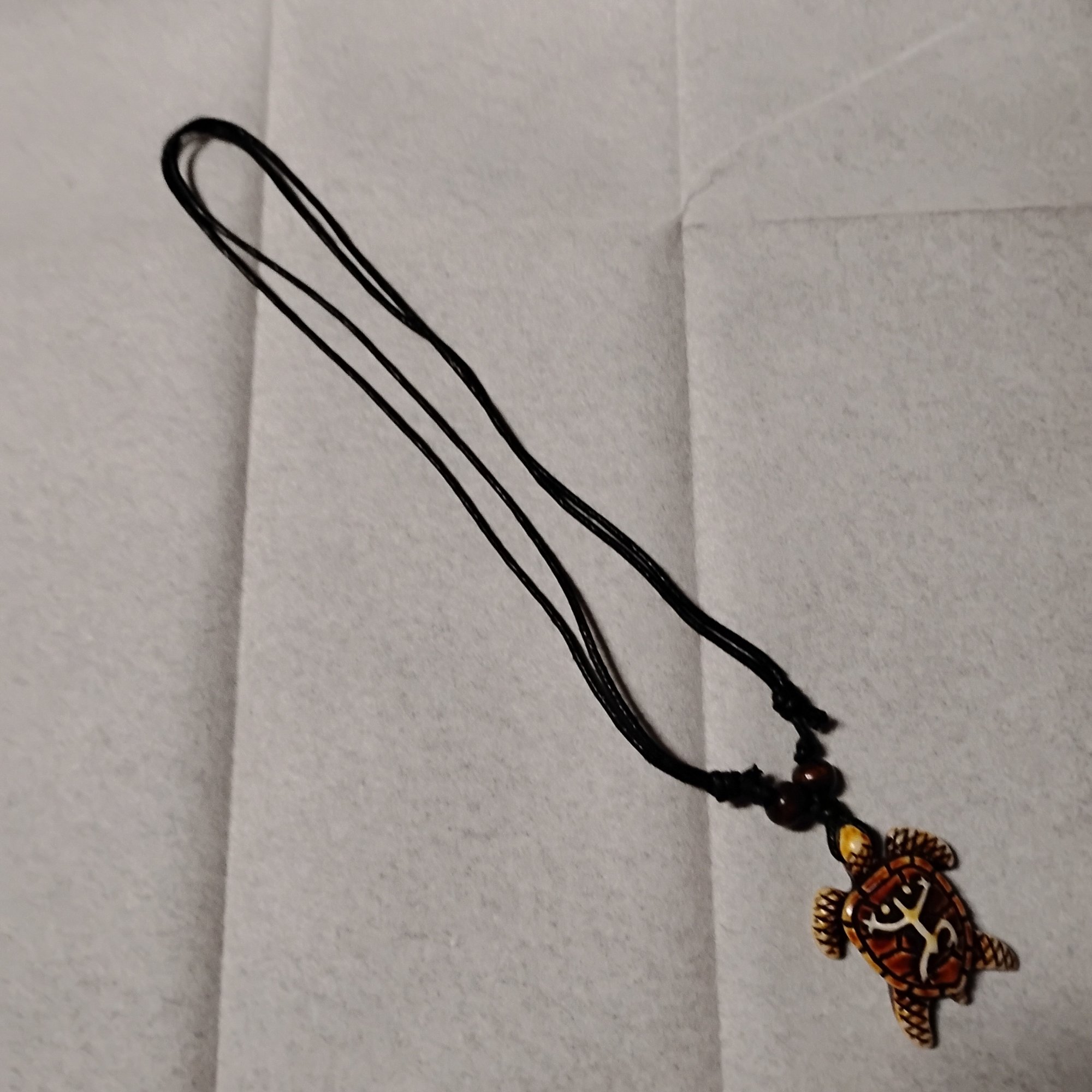 Sea Turtle Pendant Necklace, Crafted From Resin To Mimic Carved Bone Or Coconut Shell(NM)