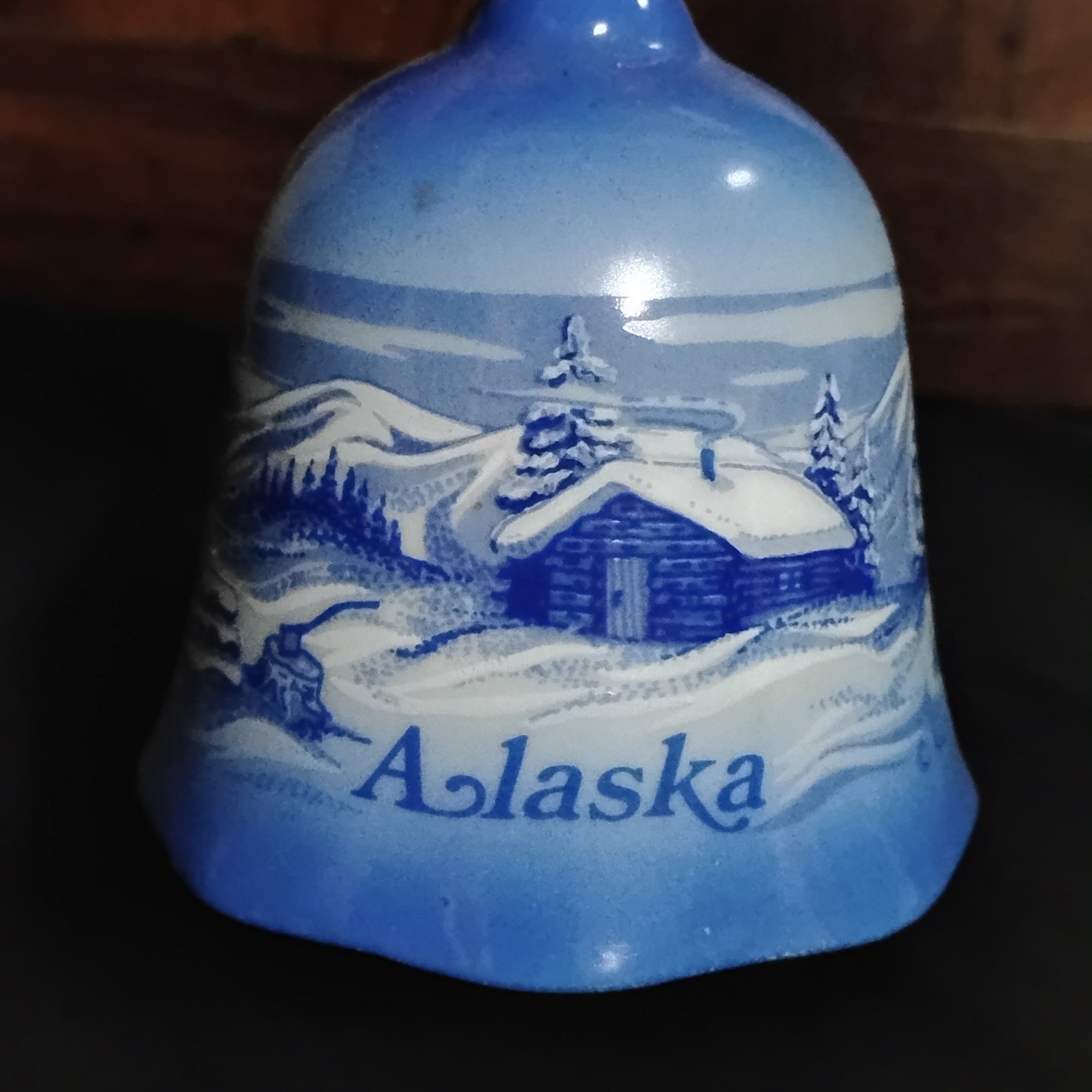 Vintage 1983 Alaska Ceramic Or Porcelain Bell Featuring A Winter Scene (NM)