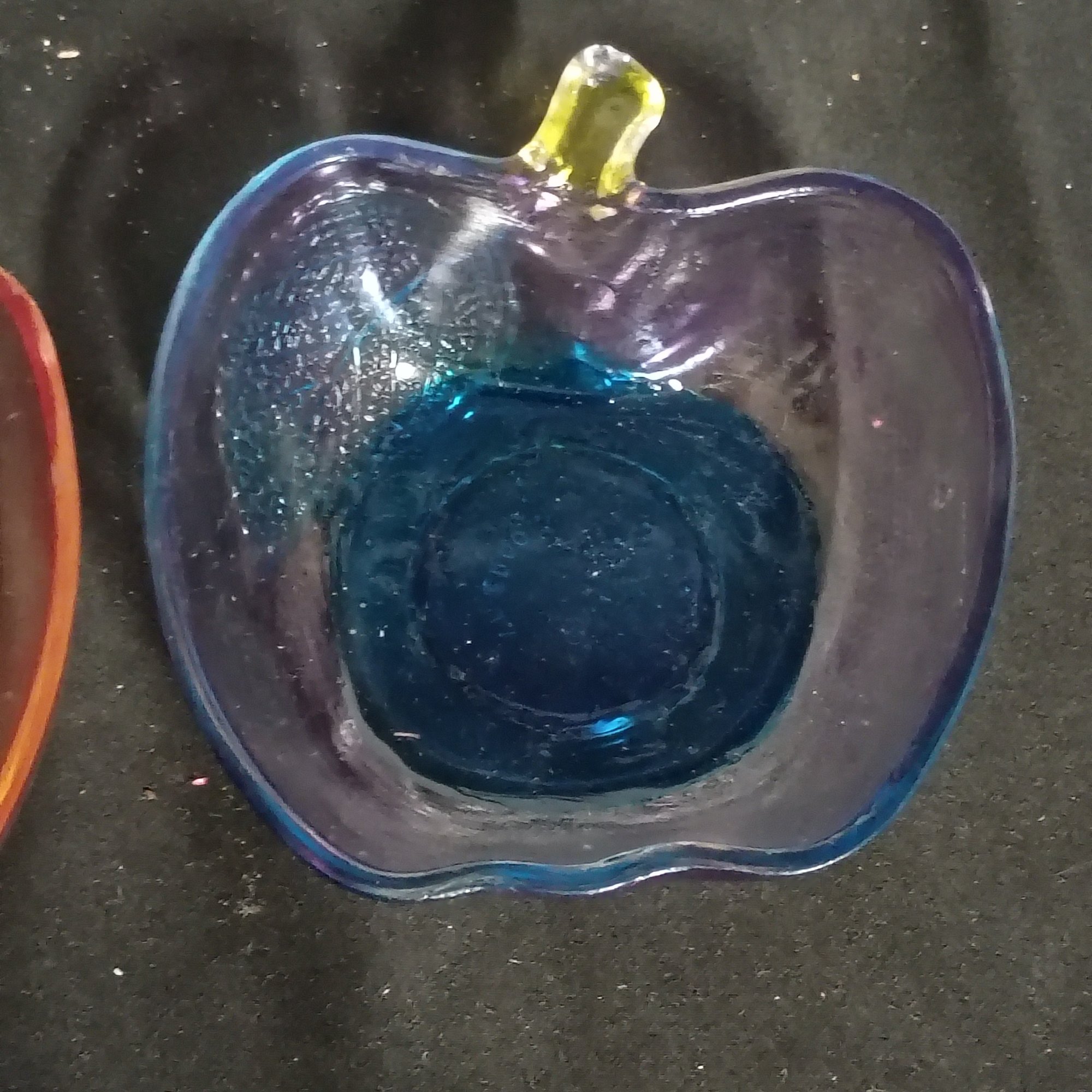 Vintage Blue KIG Indonesia Glass Apple Bowl (NM)