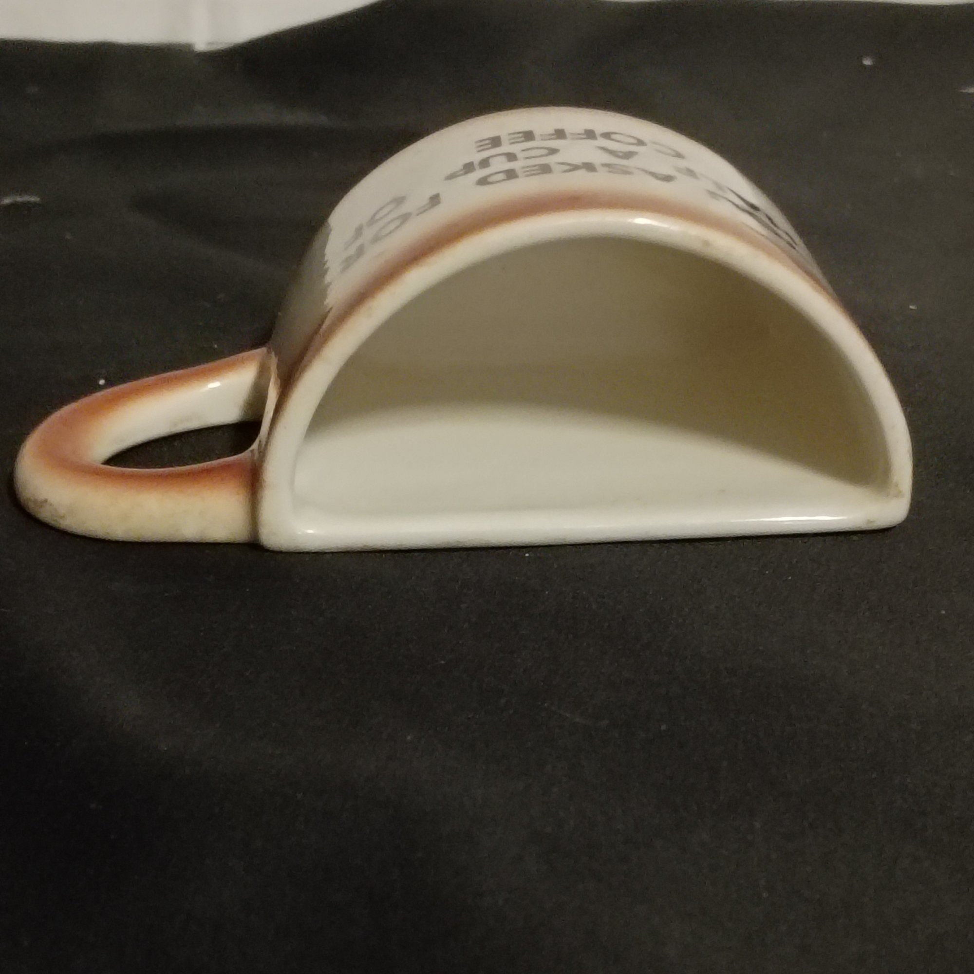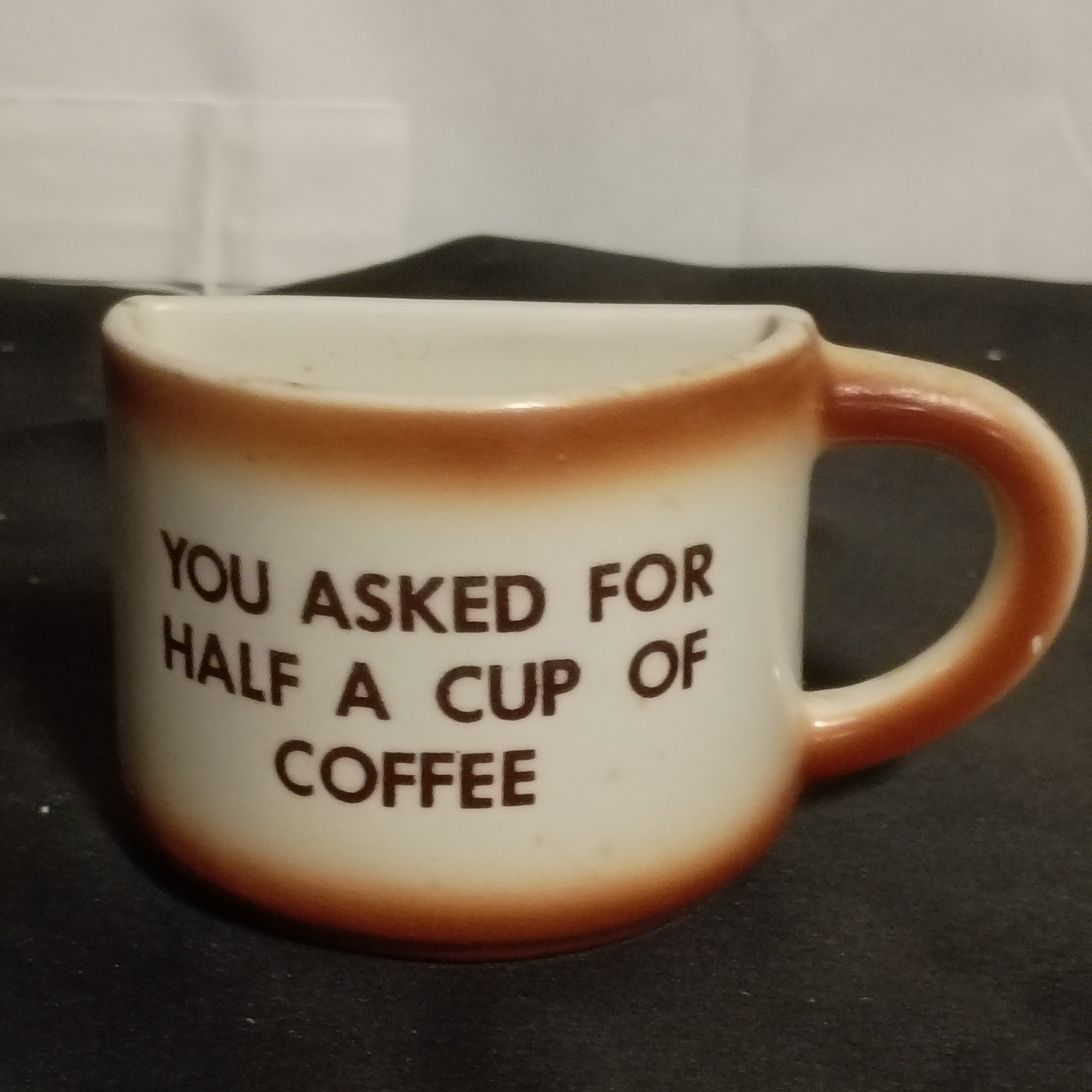 Vintage Ceramic Mug Is Designed As A Novelty Item With A Flat Side "you Asked For Half A Cup Of Coffee" (NM)