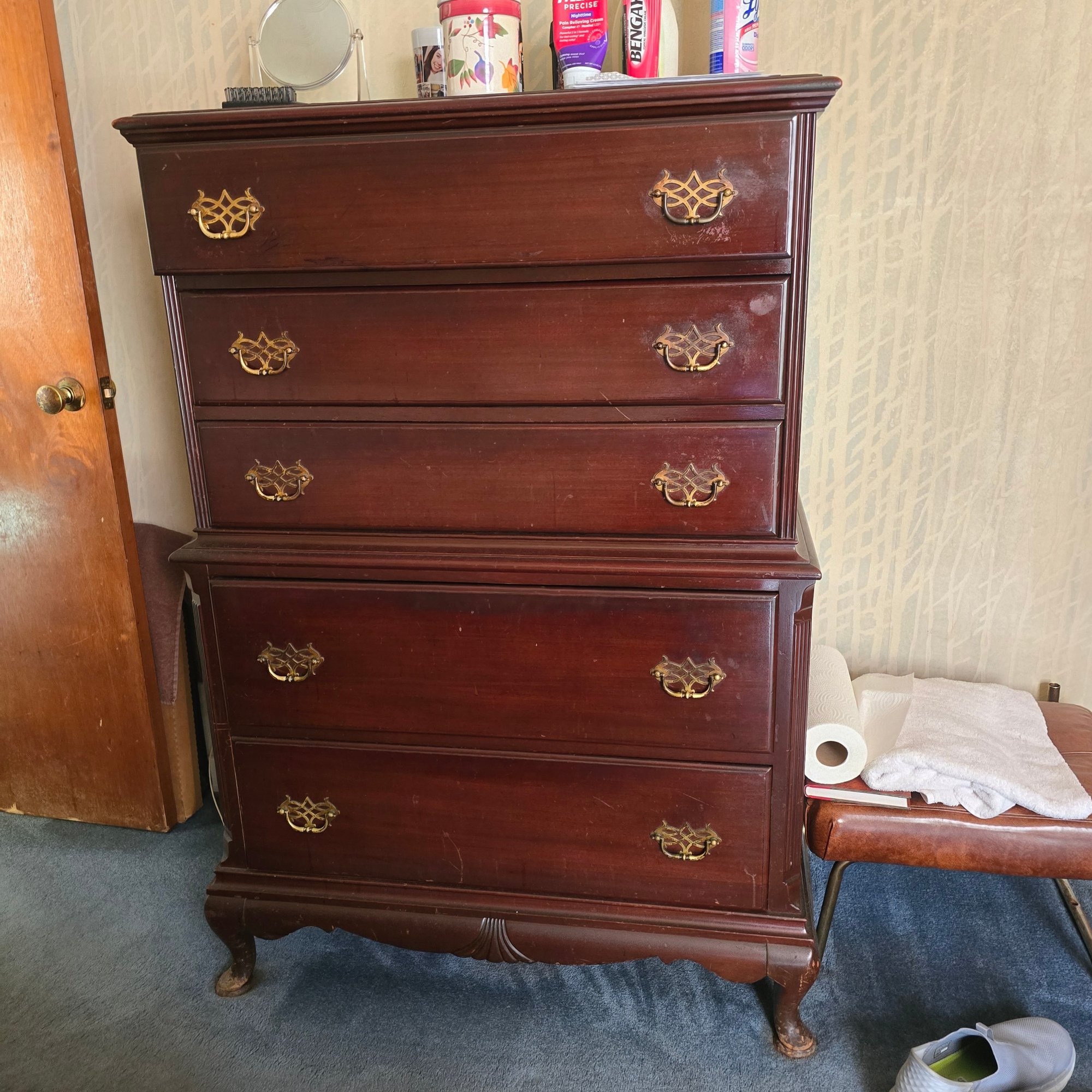 Vintage Chippendale Style Highboy Chest Of Drawers Dresser Brass Hardware (matches Item 2015)