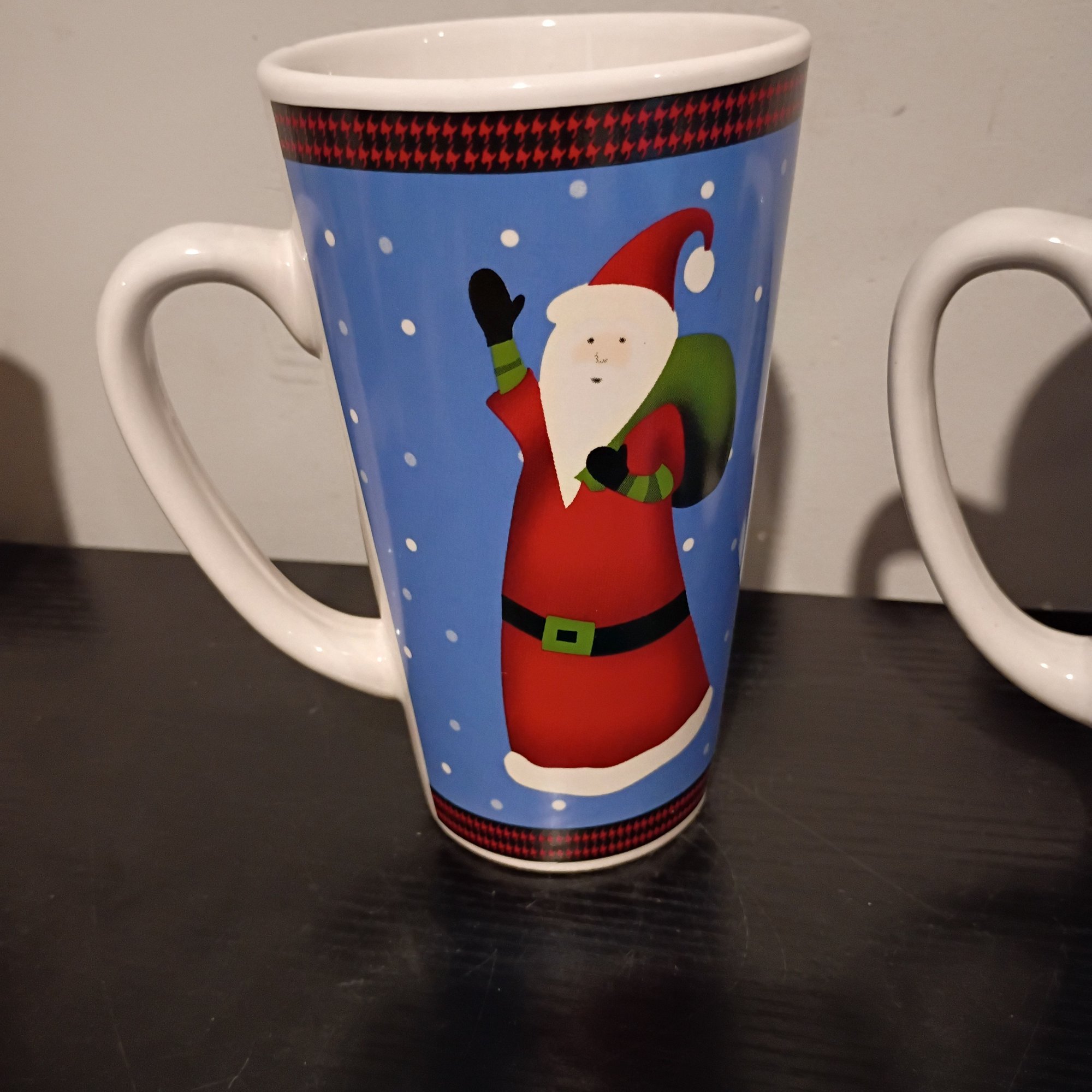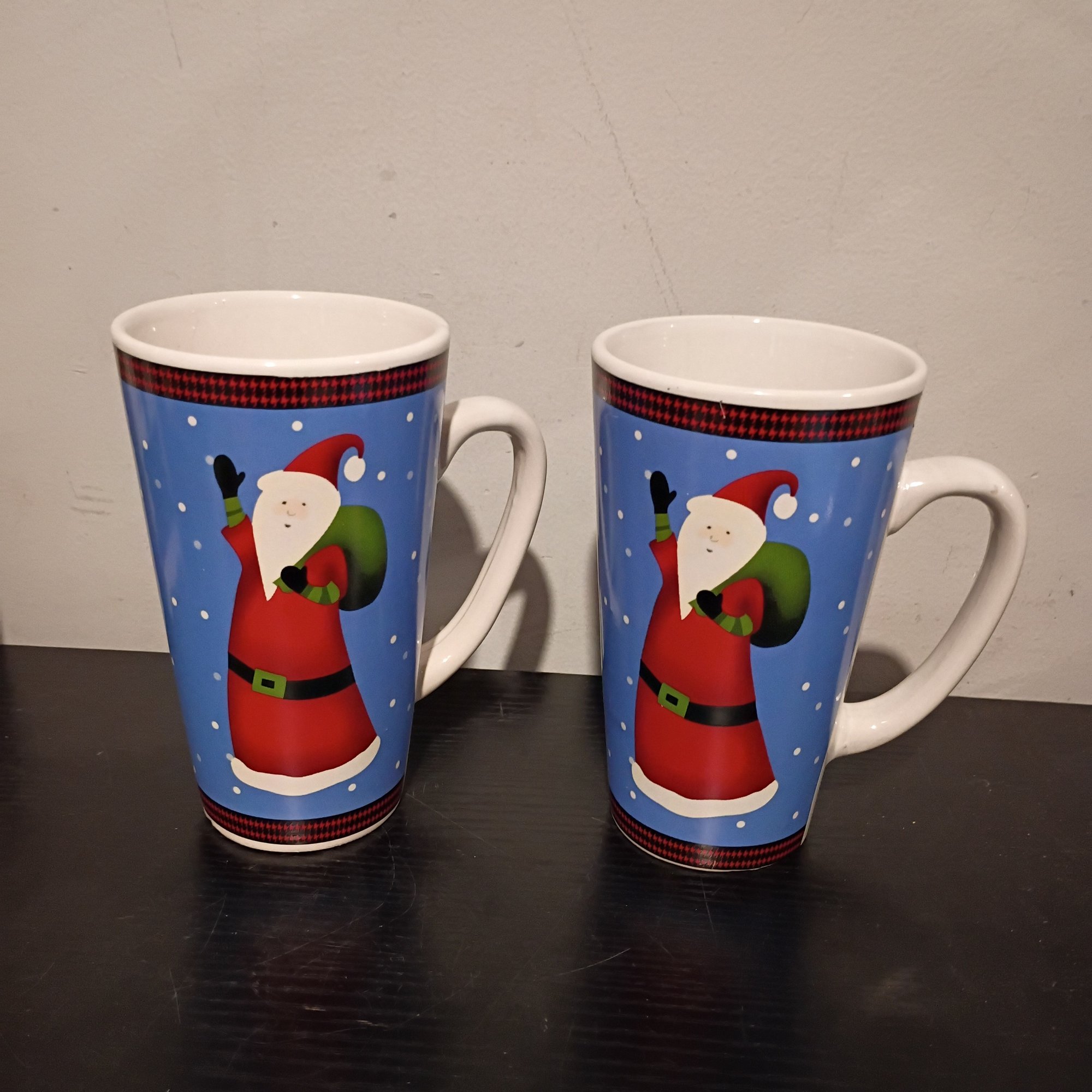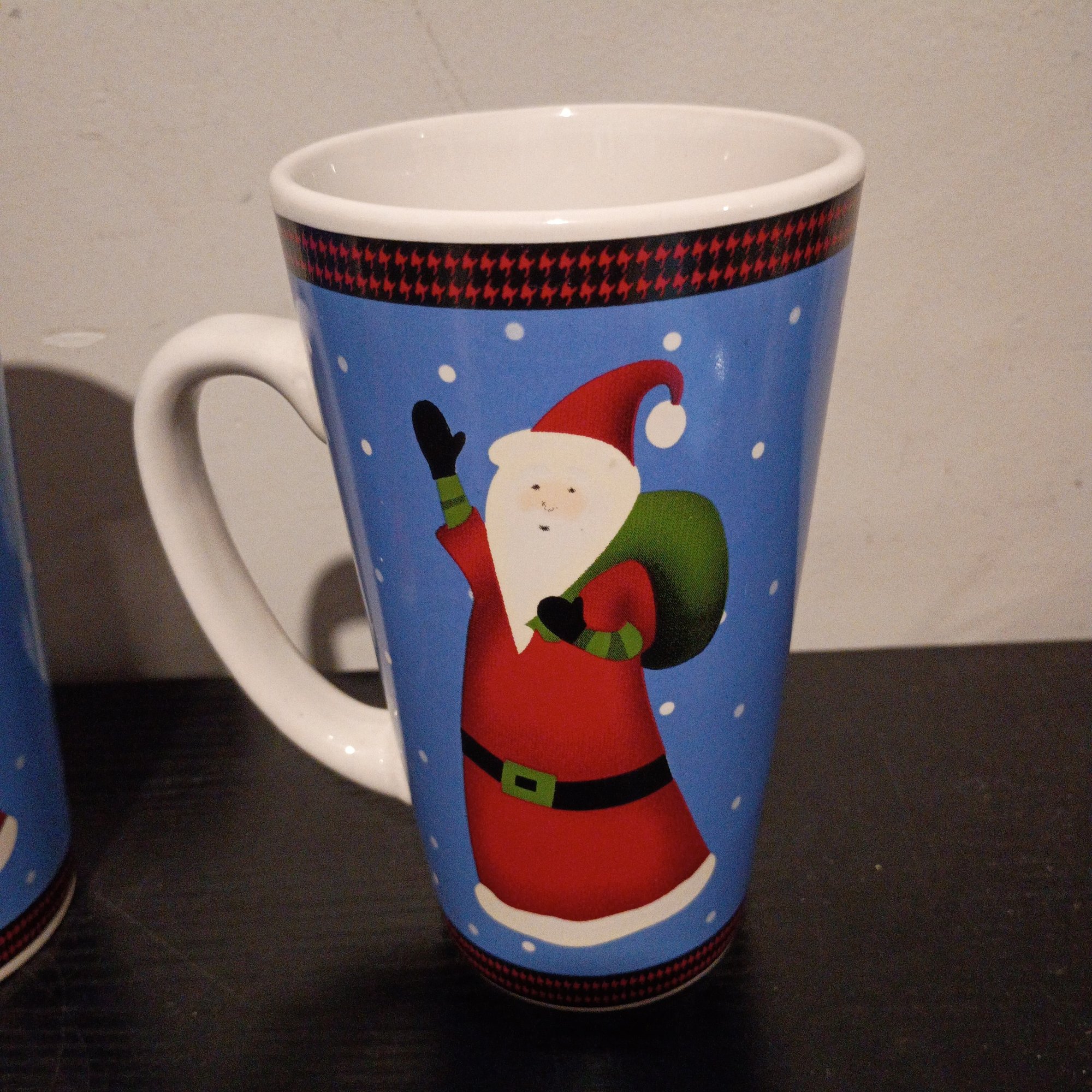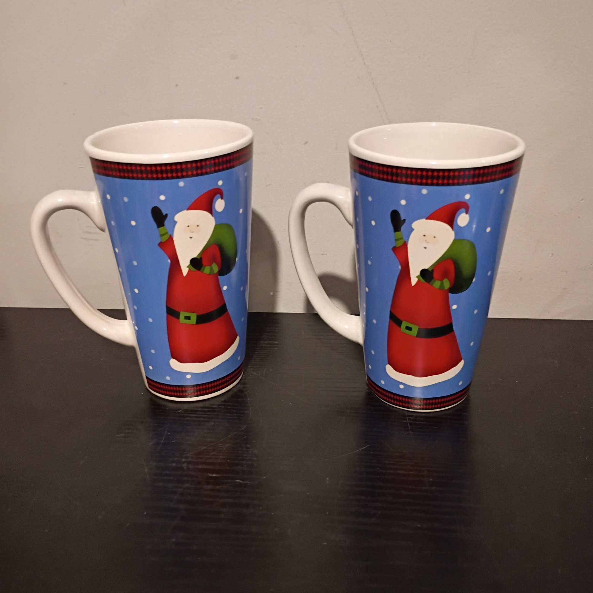 Vintage Collectible Tall Ceramic Mugs Featuring A Festive Santa Design 2 Of 2 (NM)