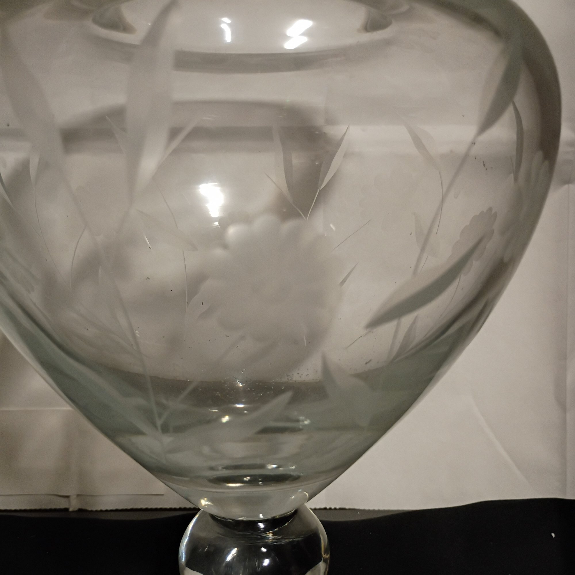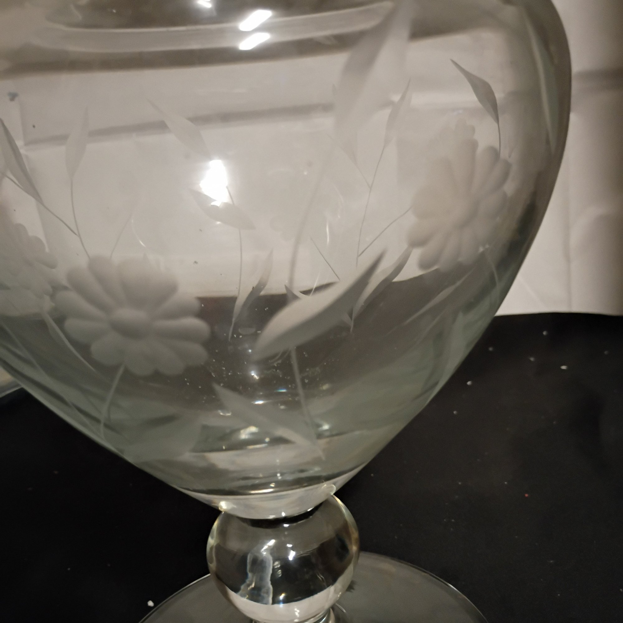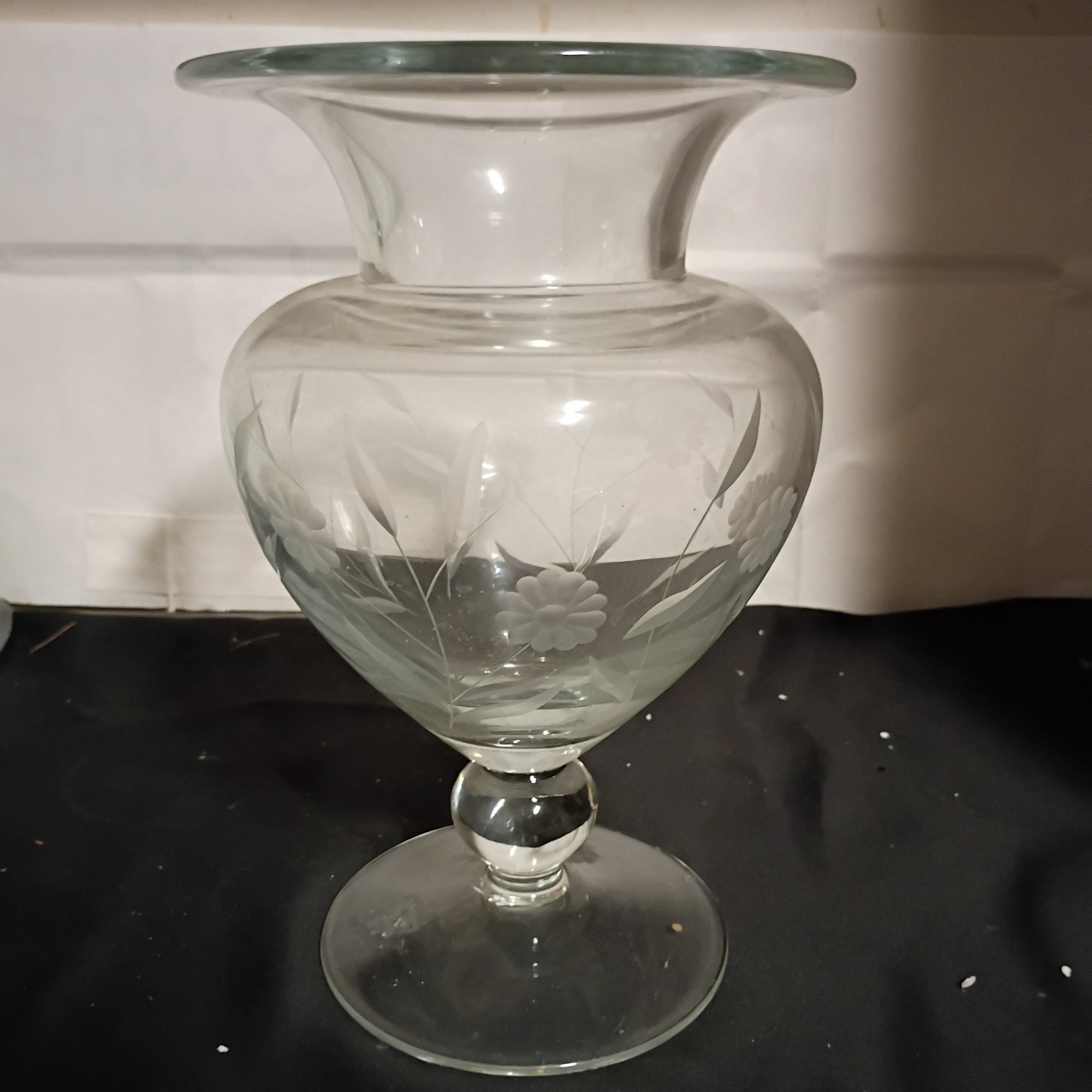 Vintage Etched Glass Pedestal Vase, Possibly By Fostoria (NM)