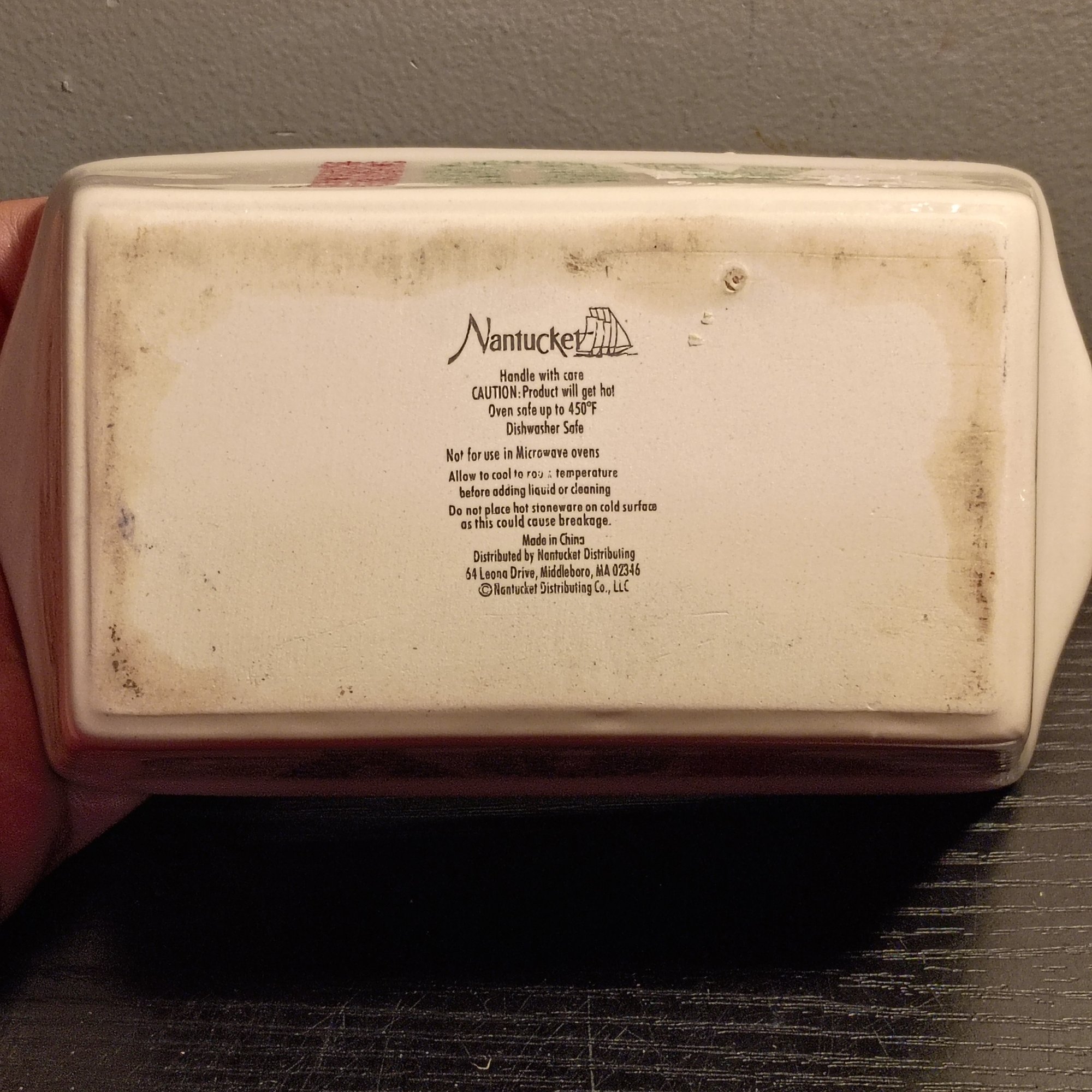 Vintage Nantucket Brand Ceramic Mini Loaf Pan Featuring A Festive Joy Pattern (NM)