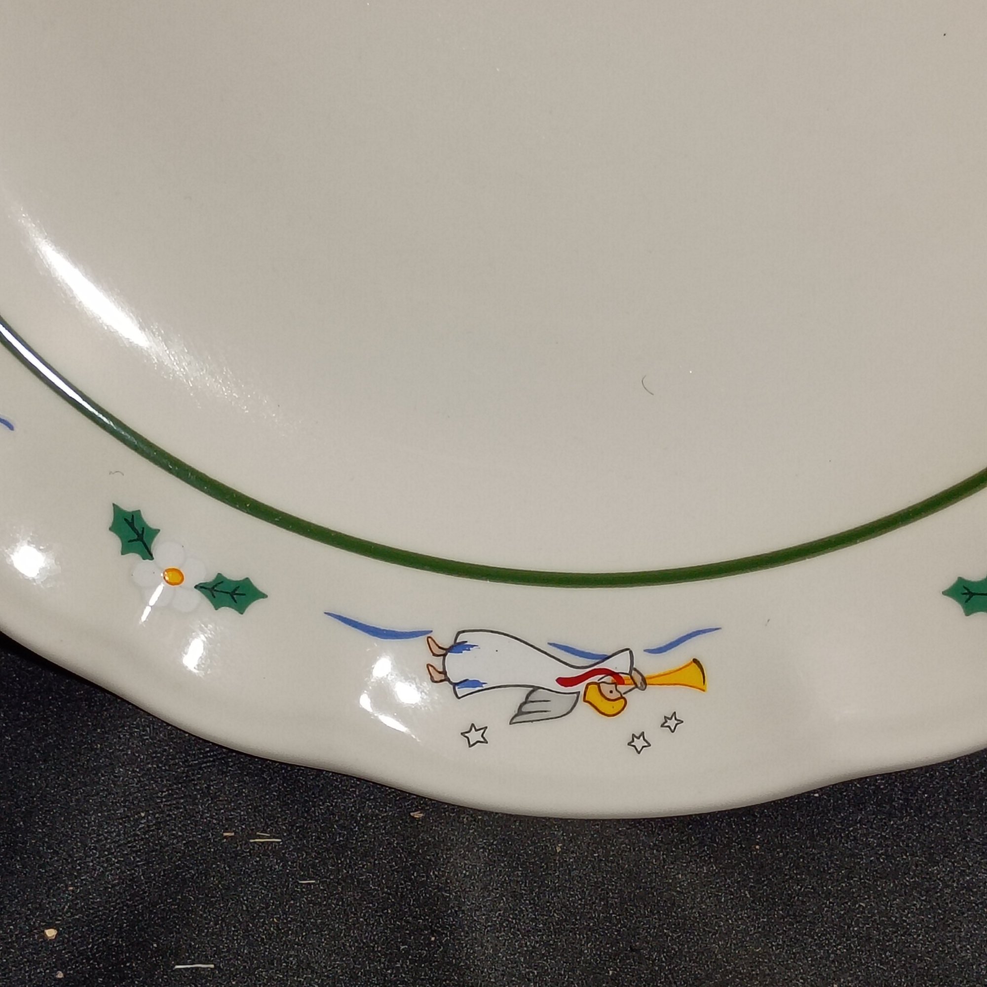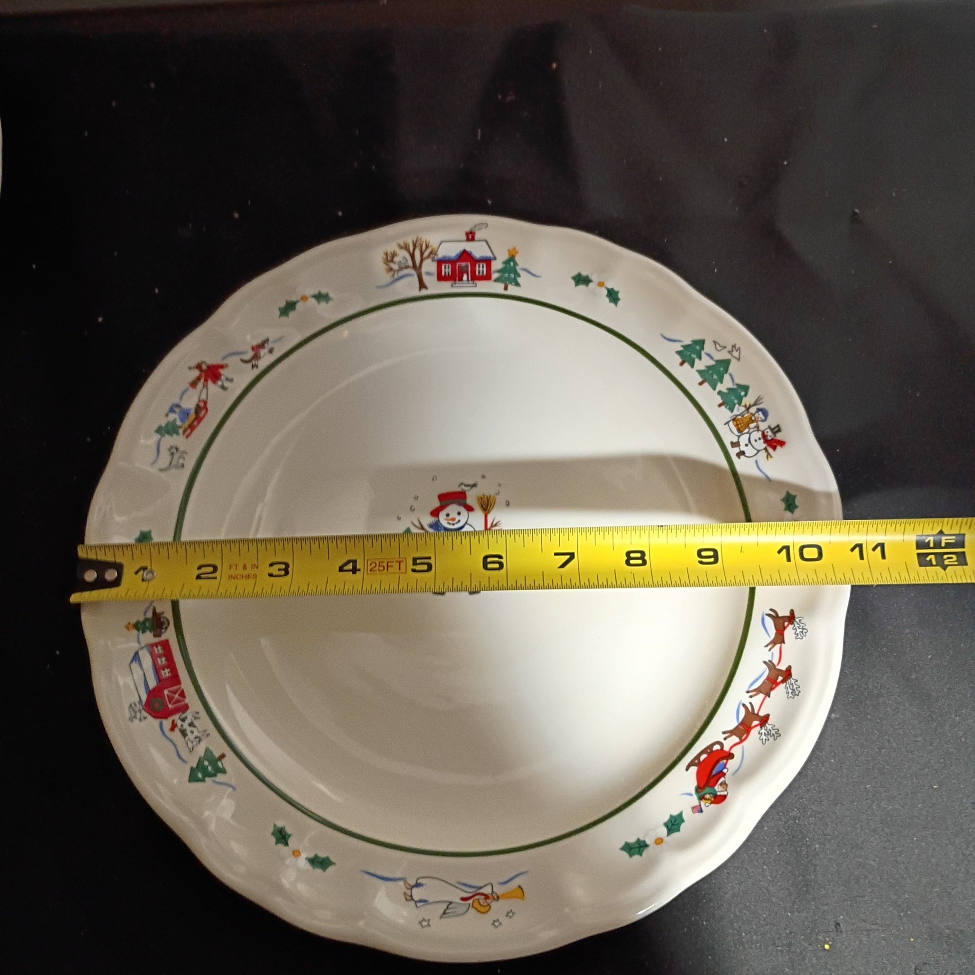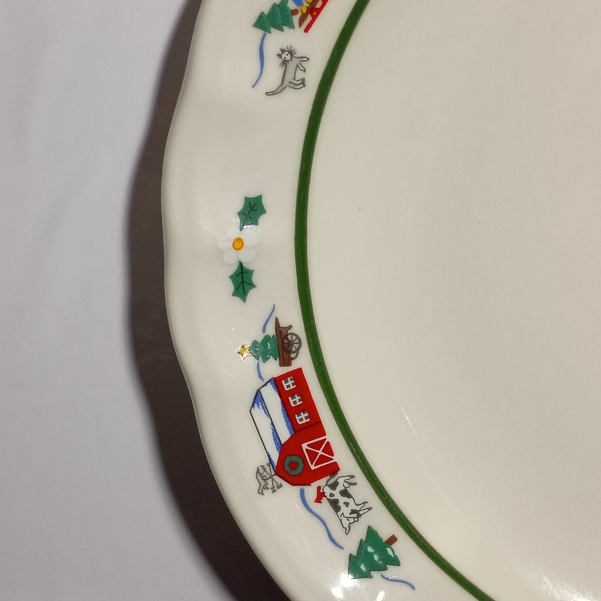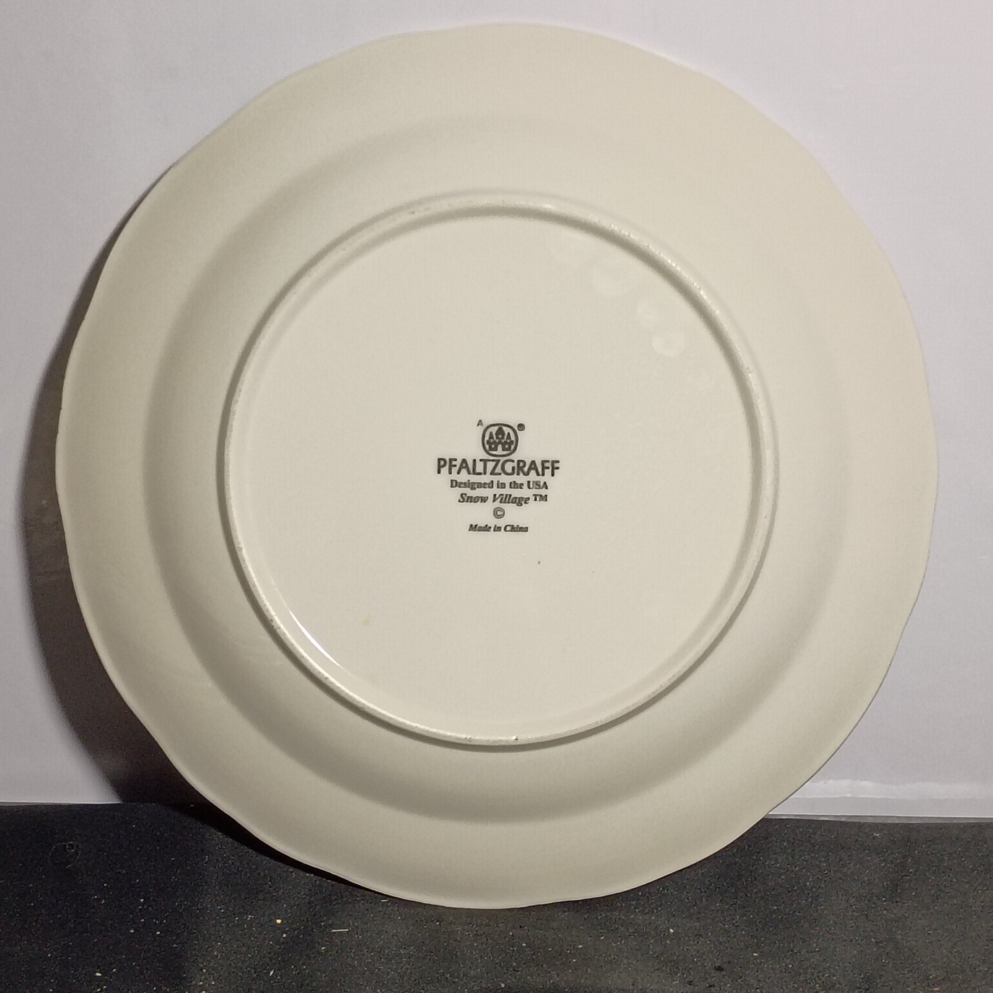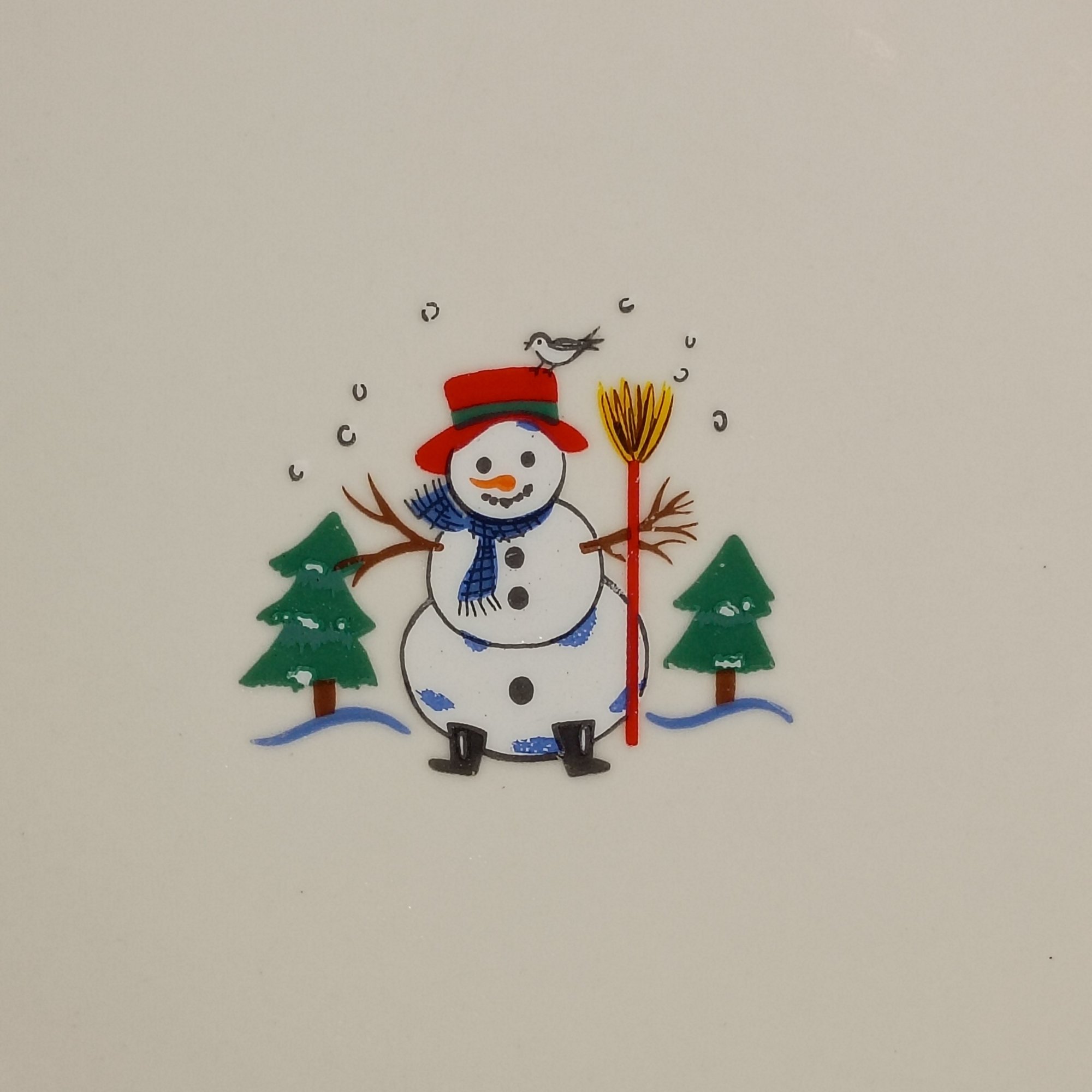 Vintage Pfaltzgraff Snow Village 10 3/4" Dinner Plates Featuring A Festive Snowman Design (NM)