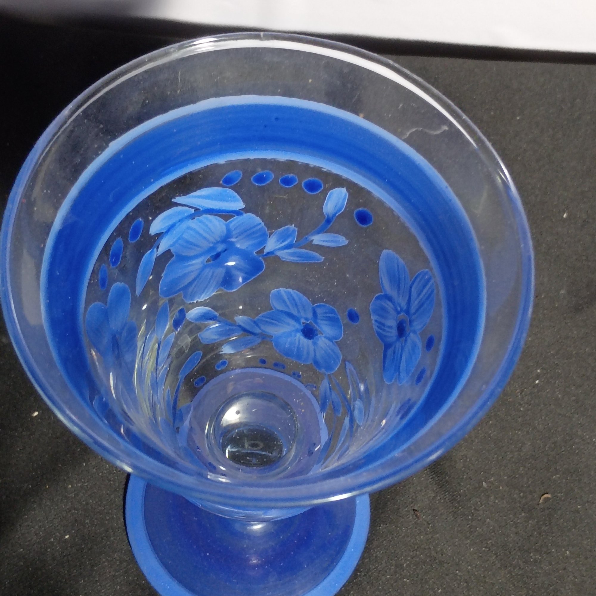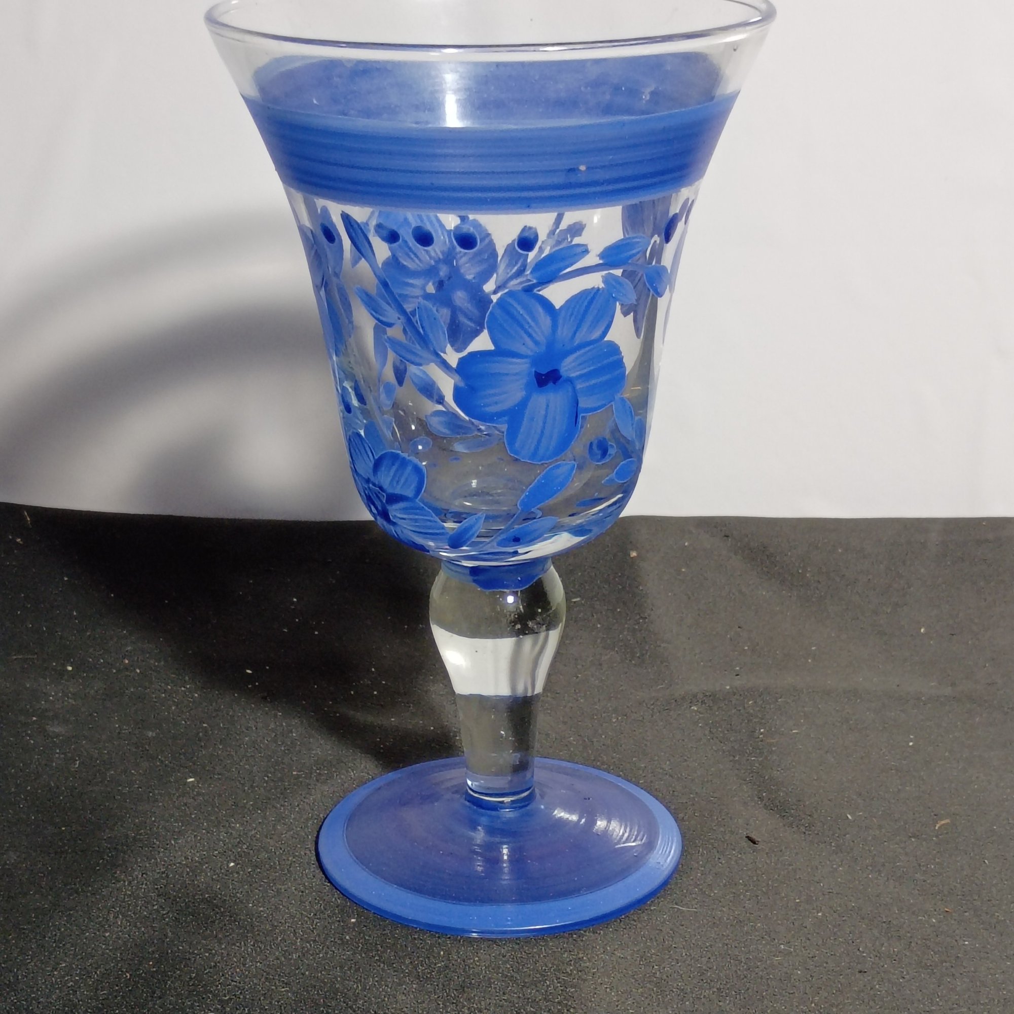 Vintage-style Stemmed Glass, With Hand Painted Blue Floral Detailing (NM)