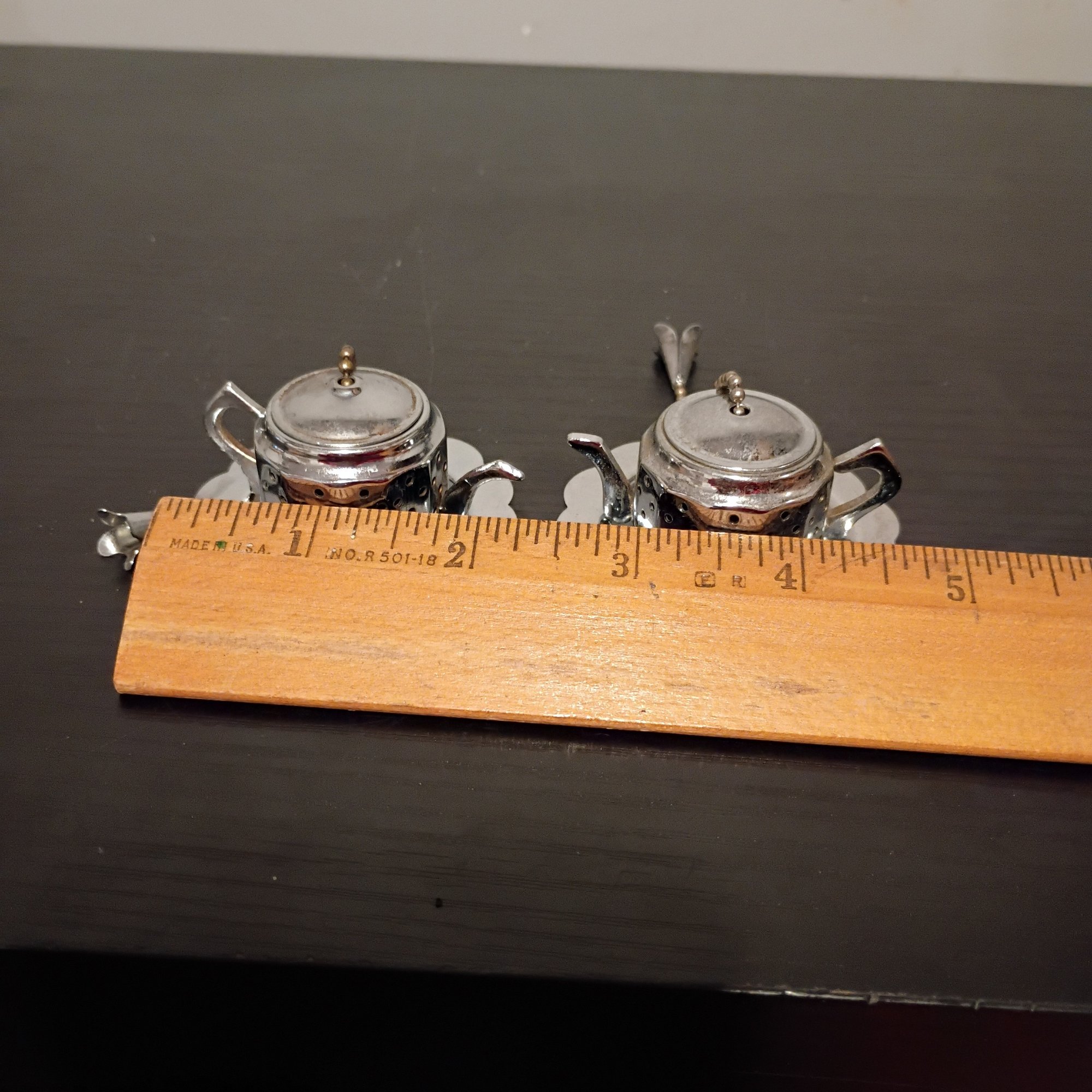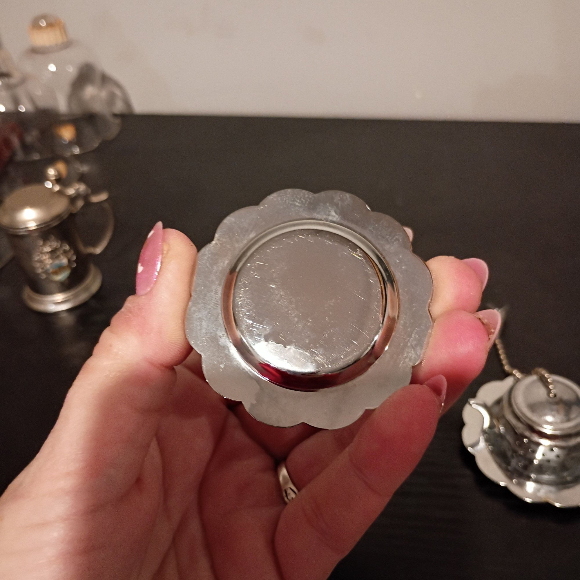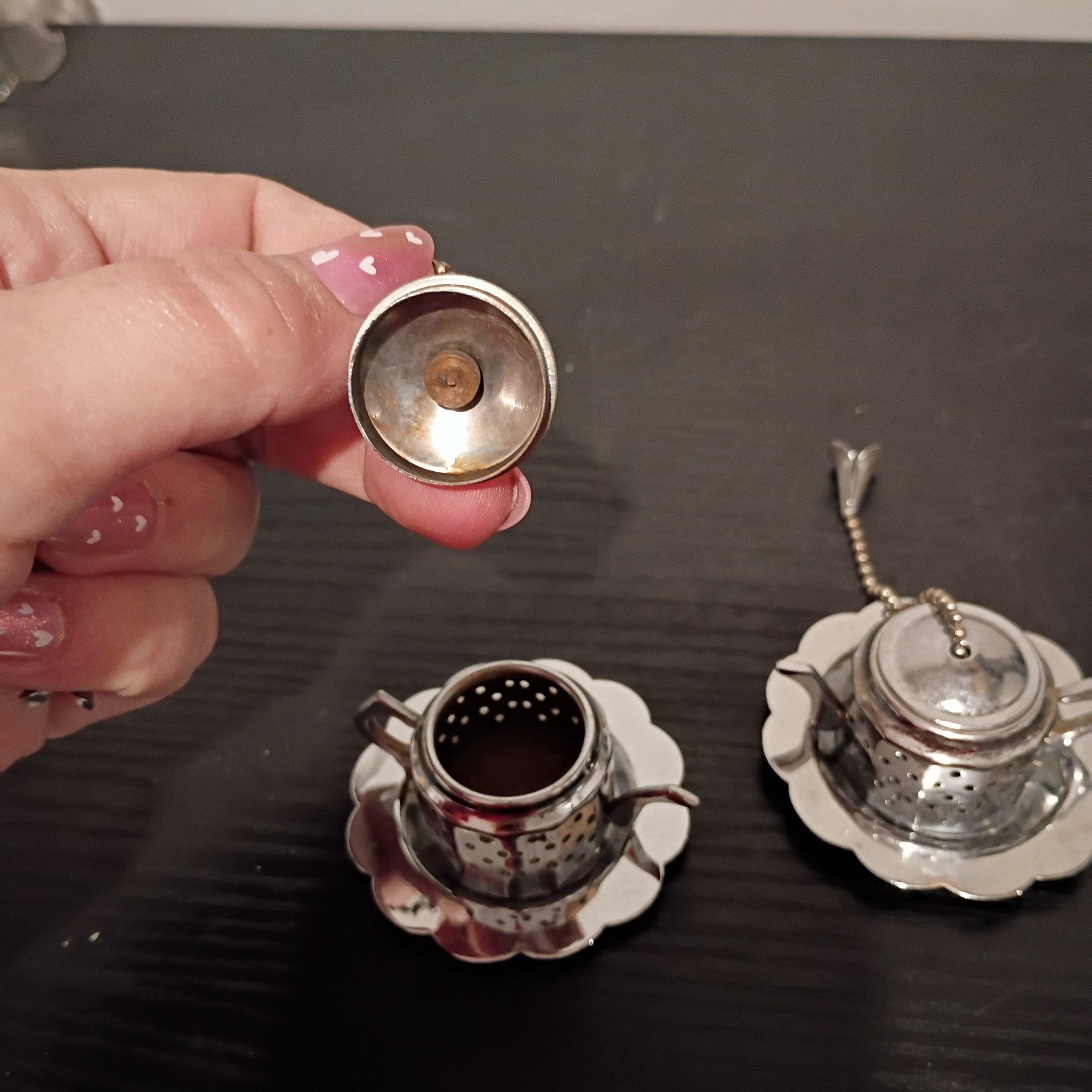 Vintage Teapot-shaped Tea Strainers With Matching Drip Trays
