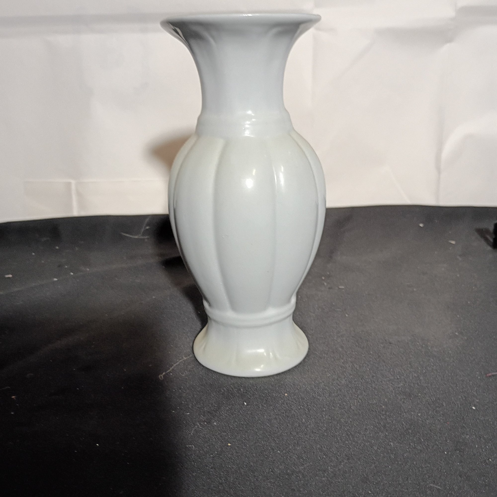 Vintage White Milk Glass Vase With A Melon Or Fluted Ribbed Design (NM)