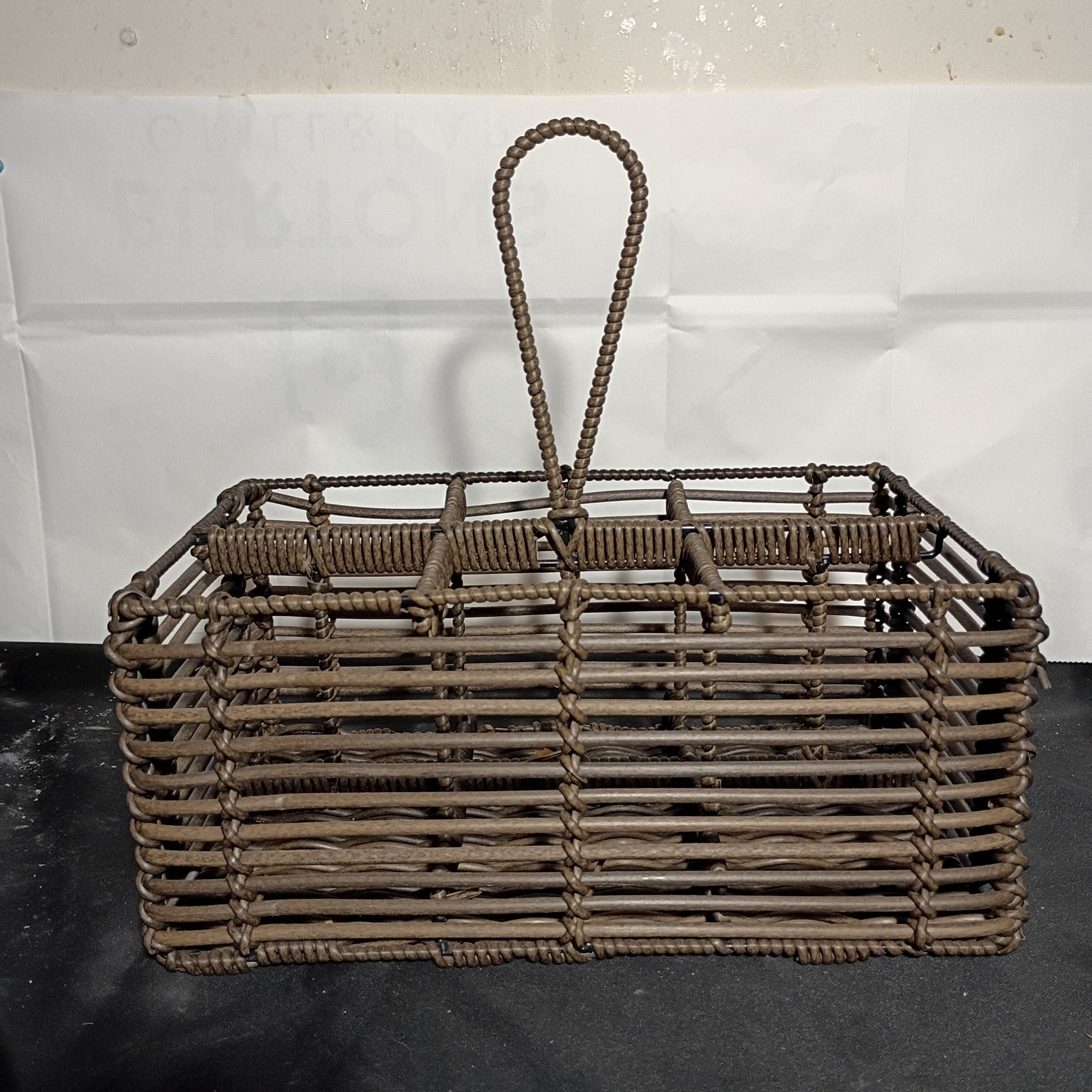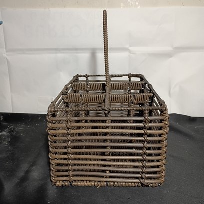 Vintage Woven Rattan Caddy Organizer Holder With A Handle (NM)