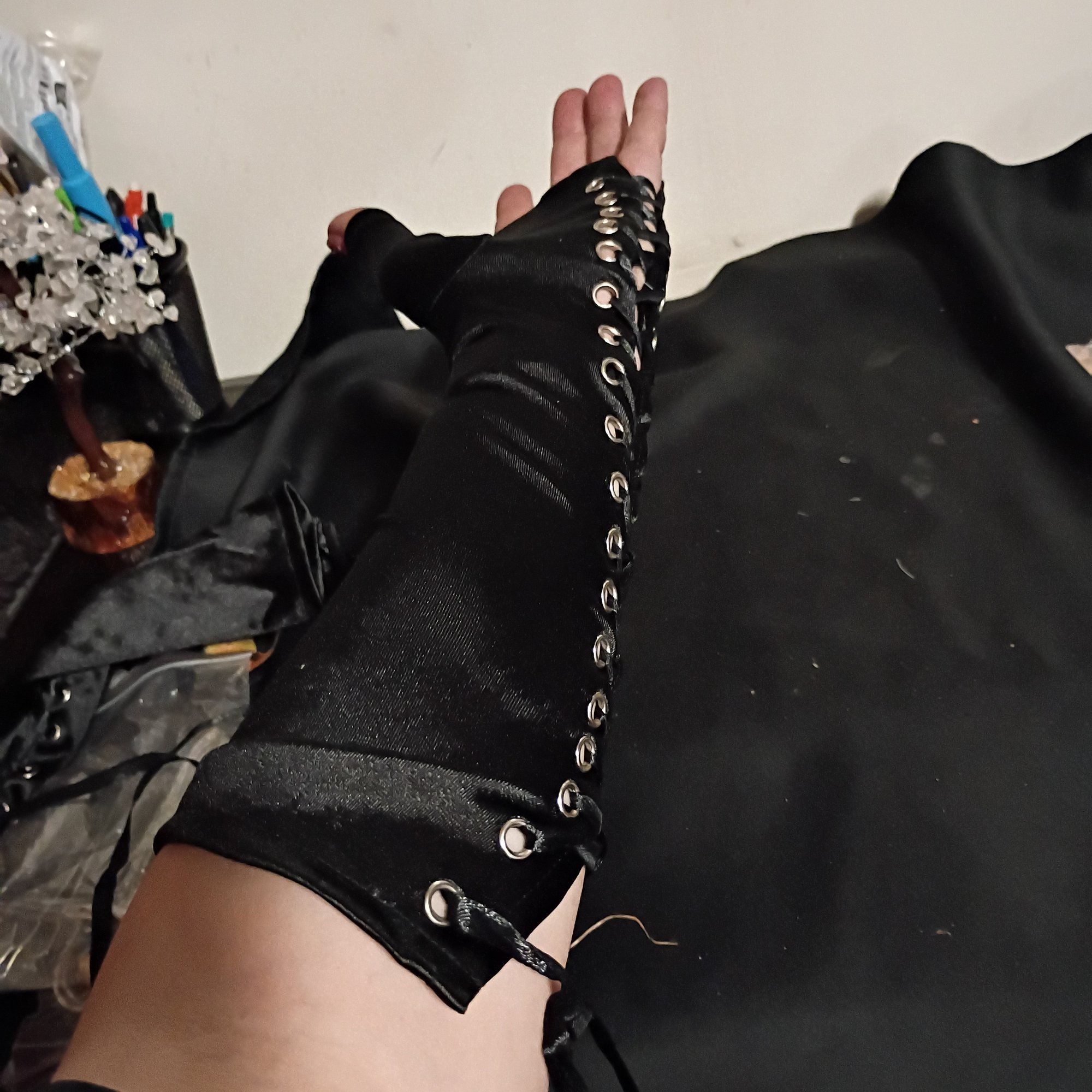 Women's Silk Like Long Fingerless Costume Gloves (NM)