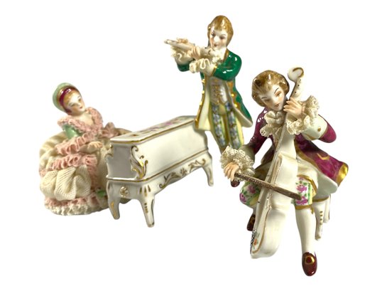 A group of three antique Dresden porcelain musicians