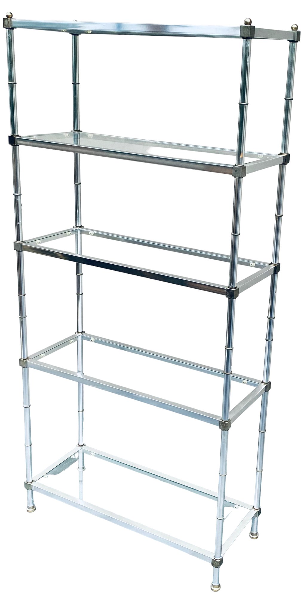 A beautiful proportion to Vintage etagere, chrome, brass and glass, elegant.