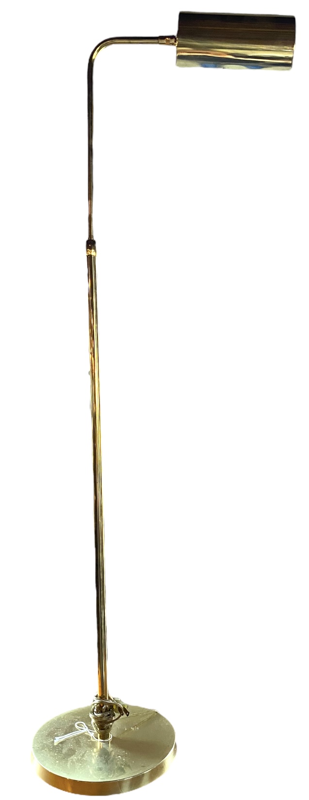 A classic brass floor lamp with adjustable arm.