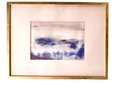 Modernist landscape in oil on paper in a gilt frame.