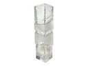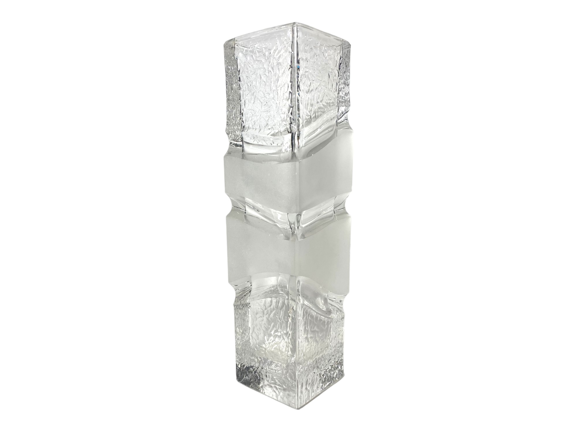 A tall slender clear glass vase in a modern design. Great for long stems.