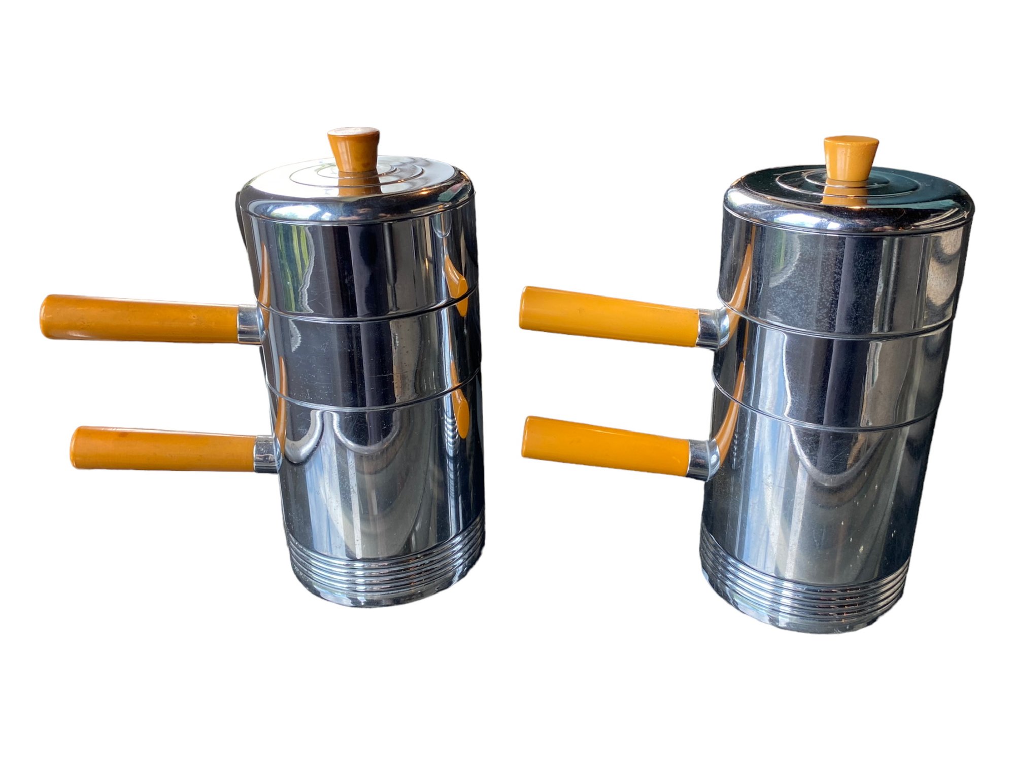 Designed by Russel Wright forChase. Chrome and bakelite handles. Set of Two.