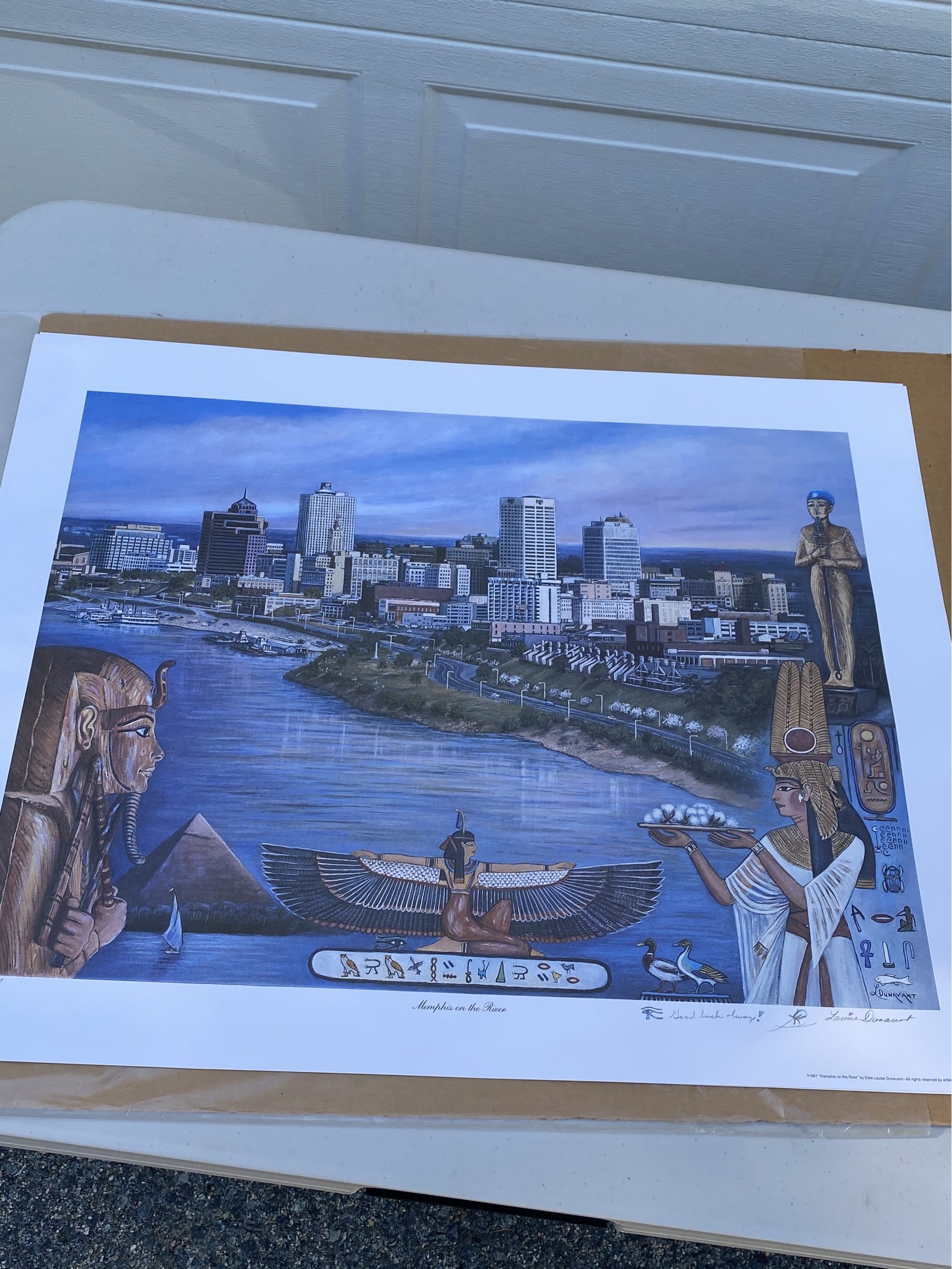 Egypt Memphis on the River Print Signed by Louise Durrant. 28" x 22". Inscribed "Good luck always!" 28" x 22". Limited Edition 1588 out of 7777.