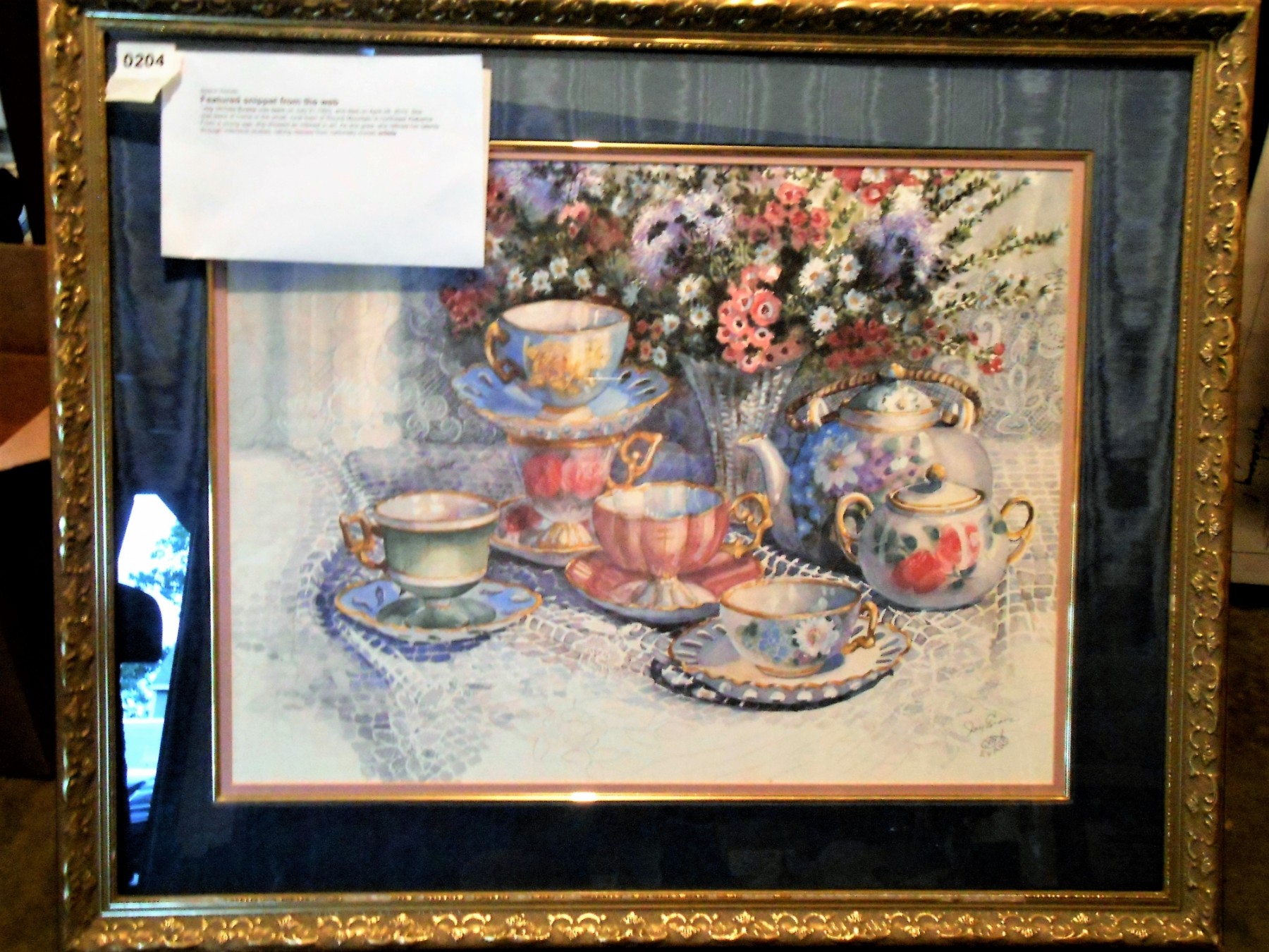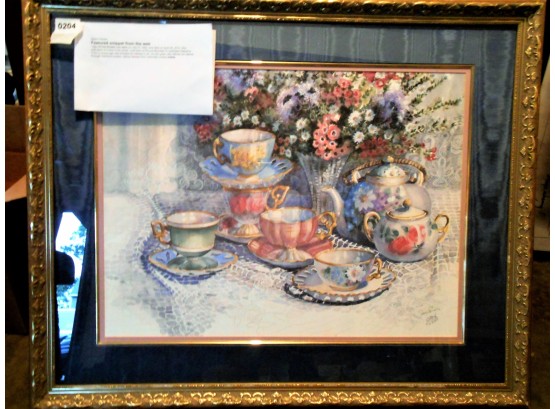 Joy Evans artist, Tea Cup & Lace, signed by artist, 32x27
