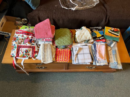 Aprons, napkins, pot holders, dish brush.