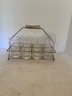 Vintage glass caddy, 4 glasses with grapevine patter, 2 taller glasses.
