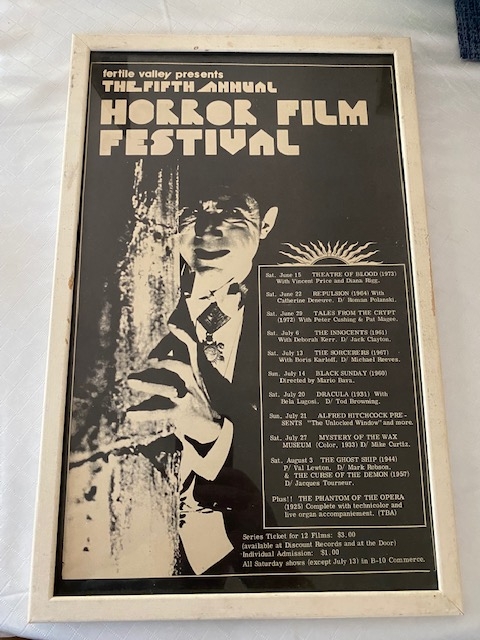 Fertal Valley presents the Fifth Annual Vintage Horror Film Festival poster. Approximately 17" x 11". Framed.