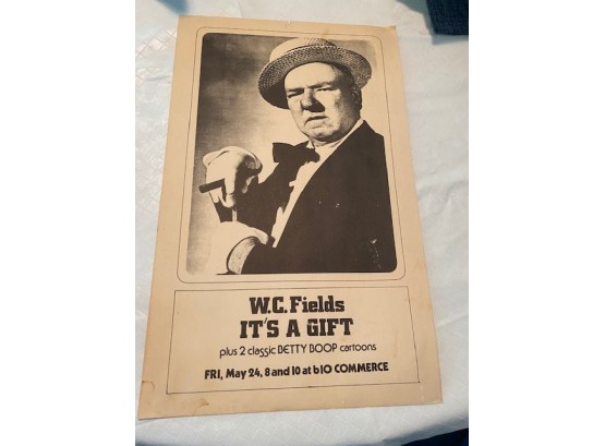 Vintage WC Fields movie poster for the movie "It's A Gift." Unframed. Approximately 17" x 11".