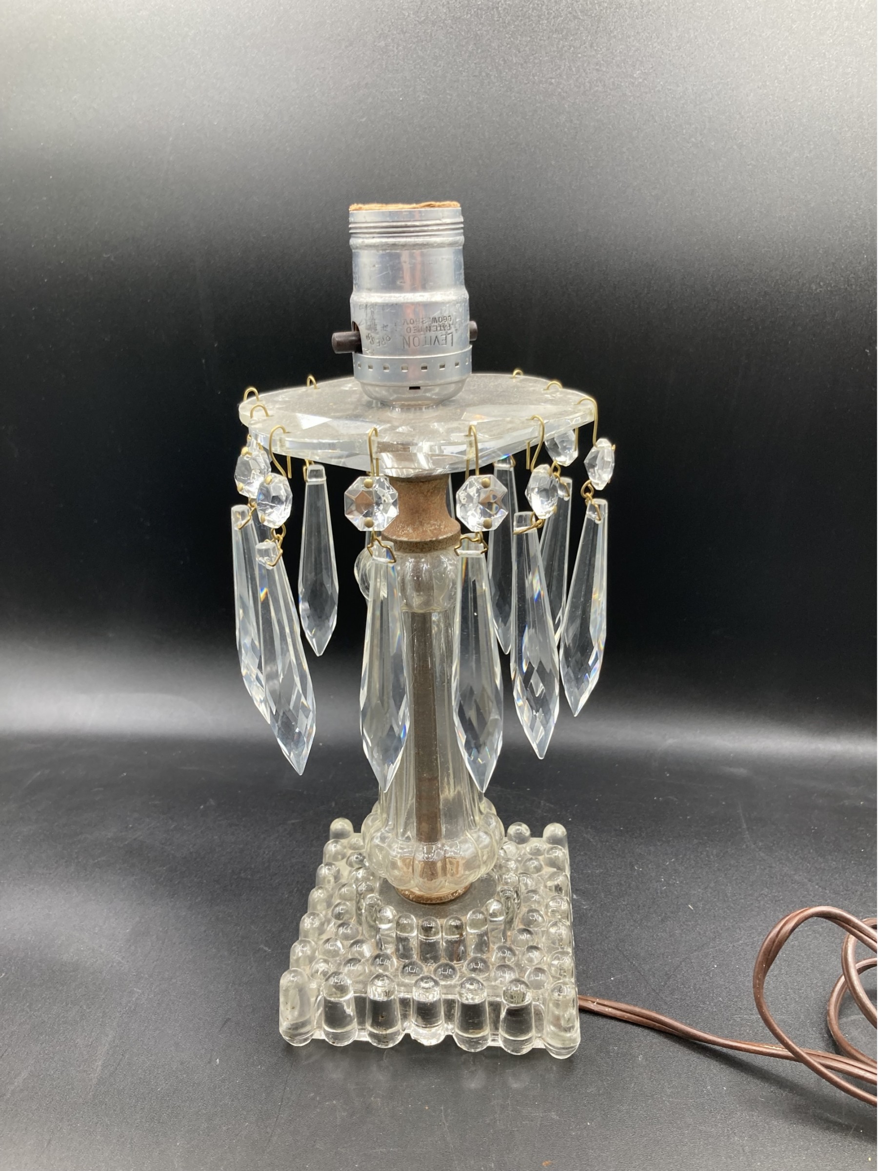 It measures about 10" tall. needs a good cleaning, Metal pieces have some rust.
