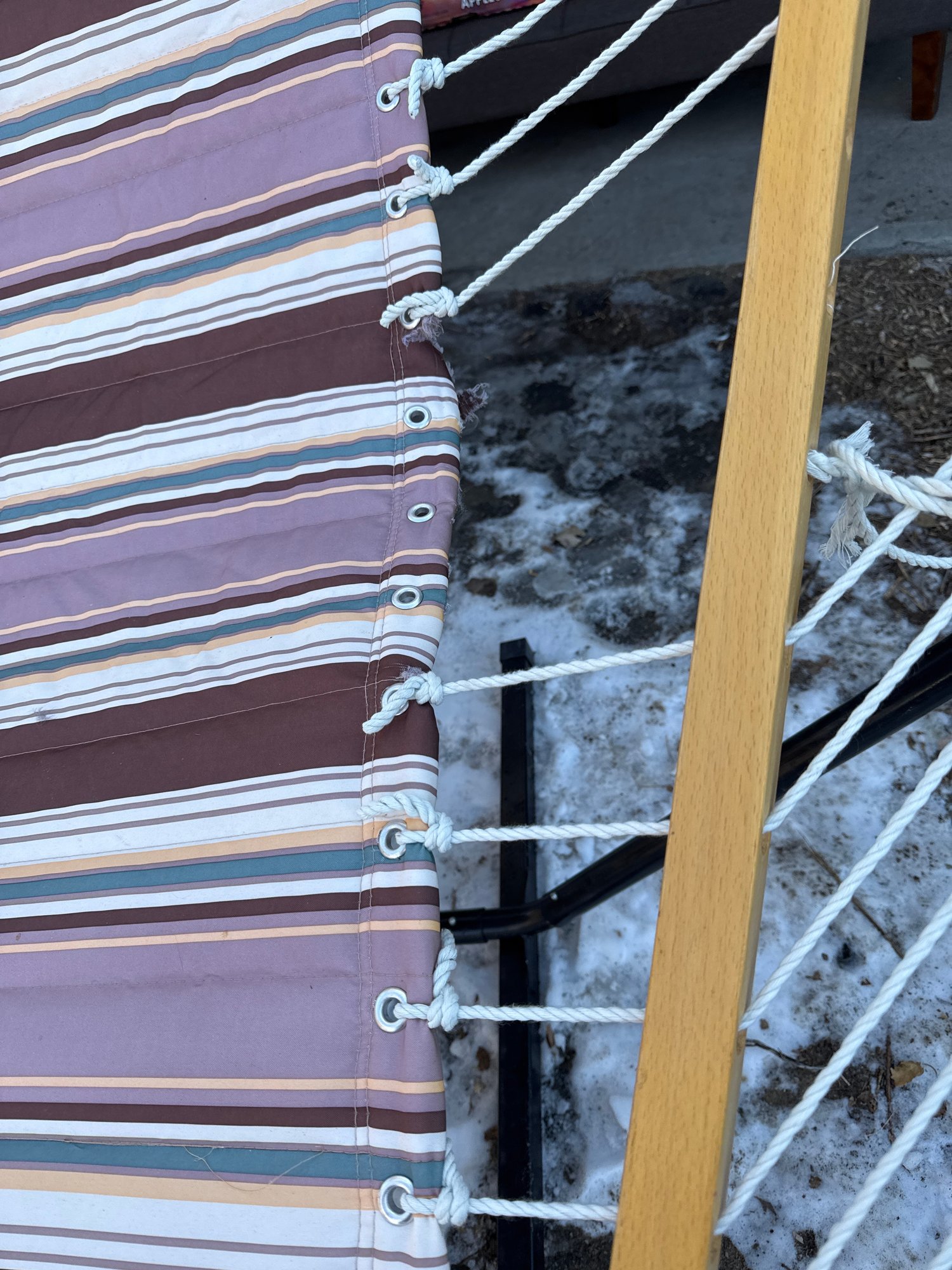 Does need some stitching and restringing near one end please see the photos the frame is complete and sturdy