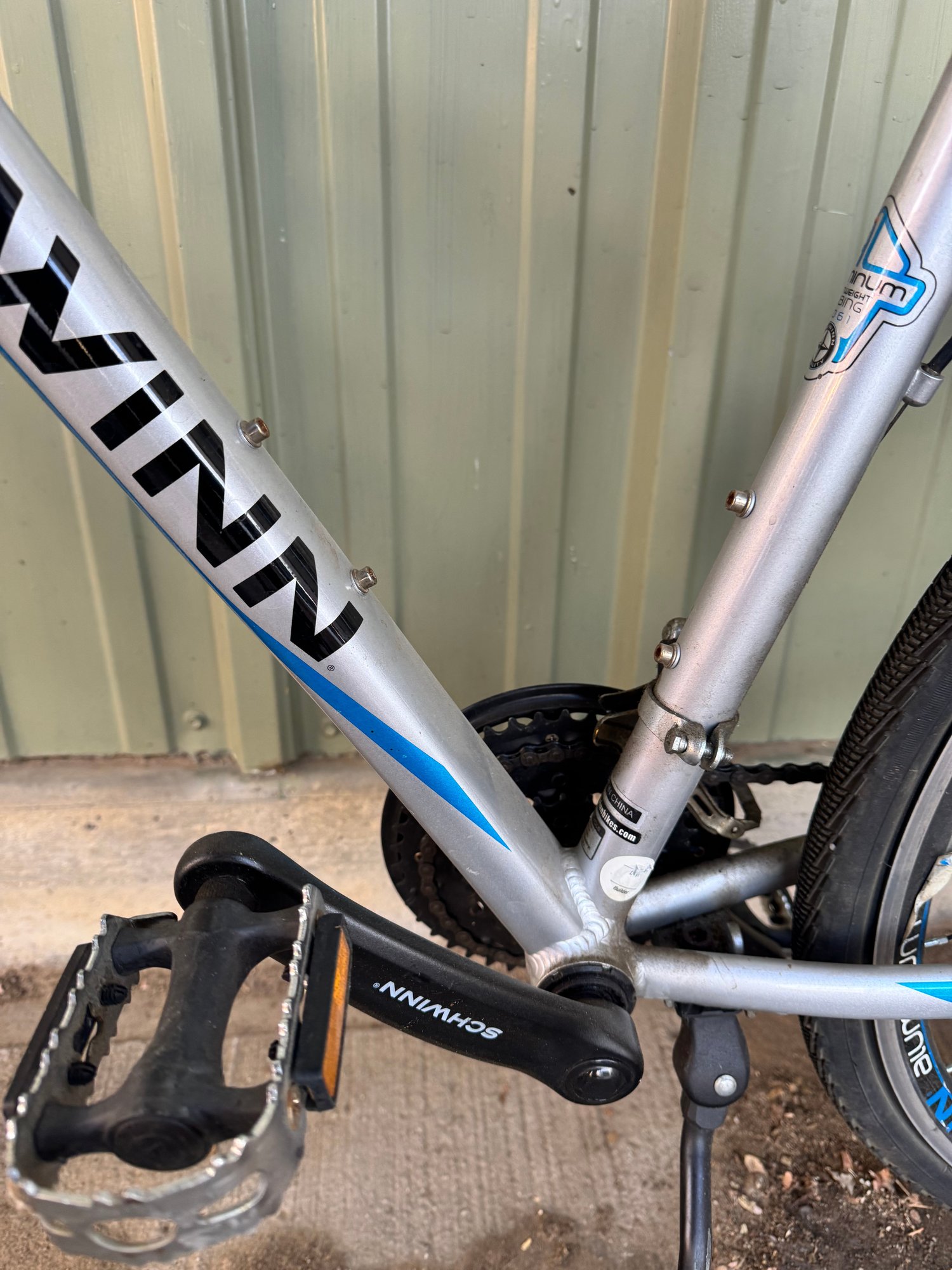 This bike is in excellent condition and it has an aluminum frame. The tires are flat, shocks are working in order. No rips in the seat etc.