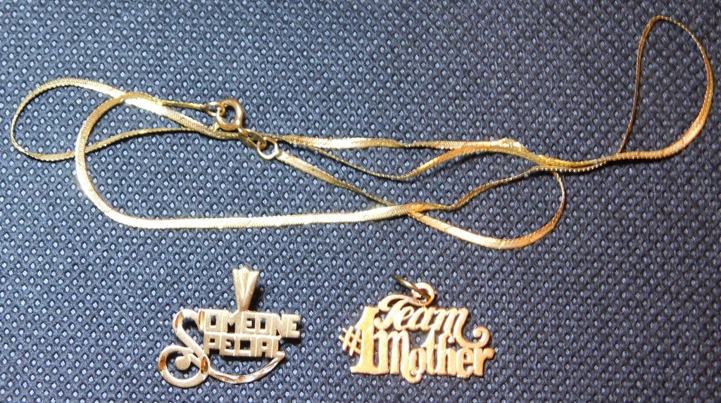 The charms are in very good condition. The necklace appears to have been knotted and does not lay flat.