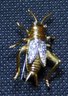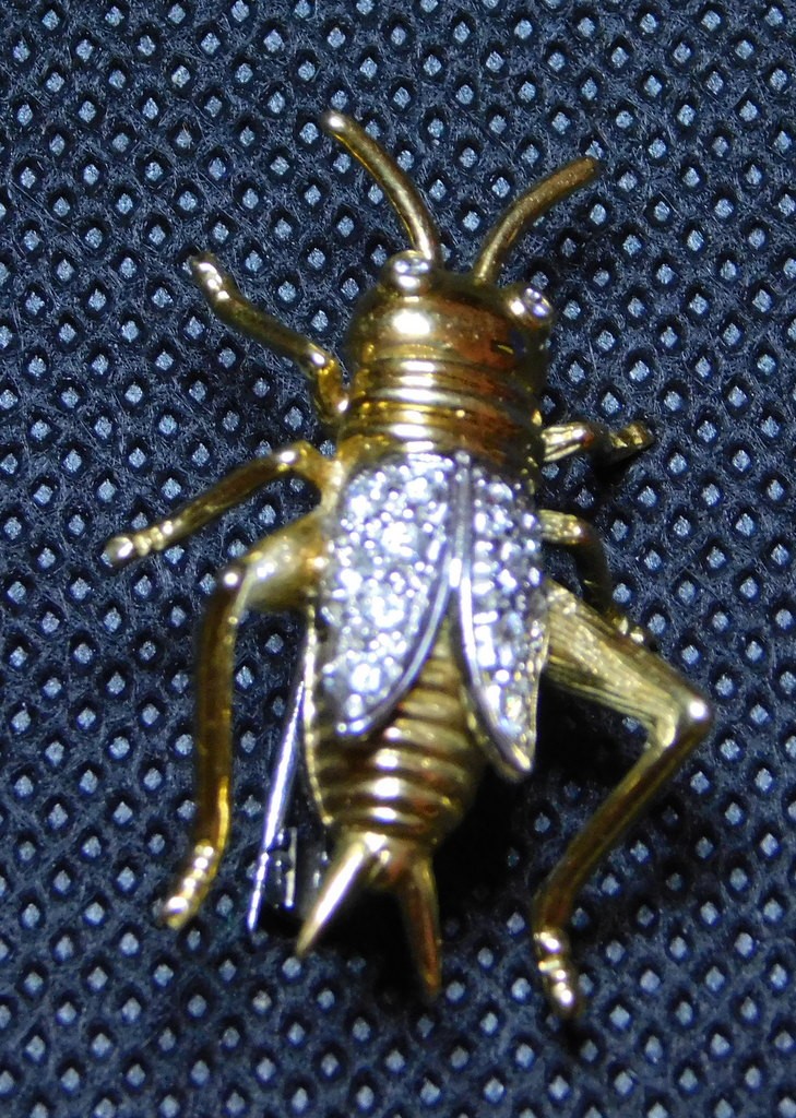 The 14 K and a manufacture name is stamped on the pin part of this piece. Name looks like Spark. Stones tested unevenly.