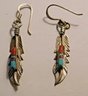 Barney Signed Sterling Silver Navajo Handmade Feather Earrings