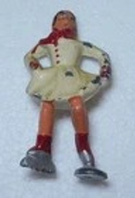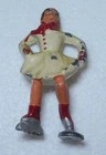 Vintage BARCLAY Female Village Ice Skater Lead Figure - White / Red 1930's