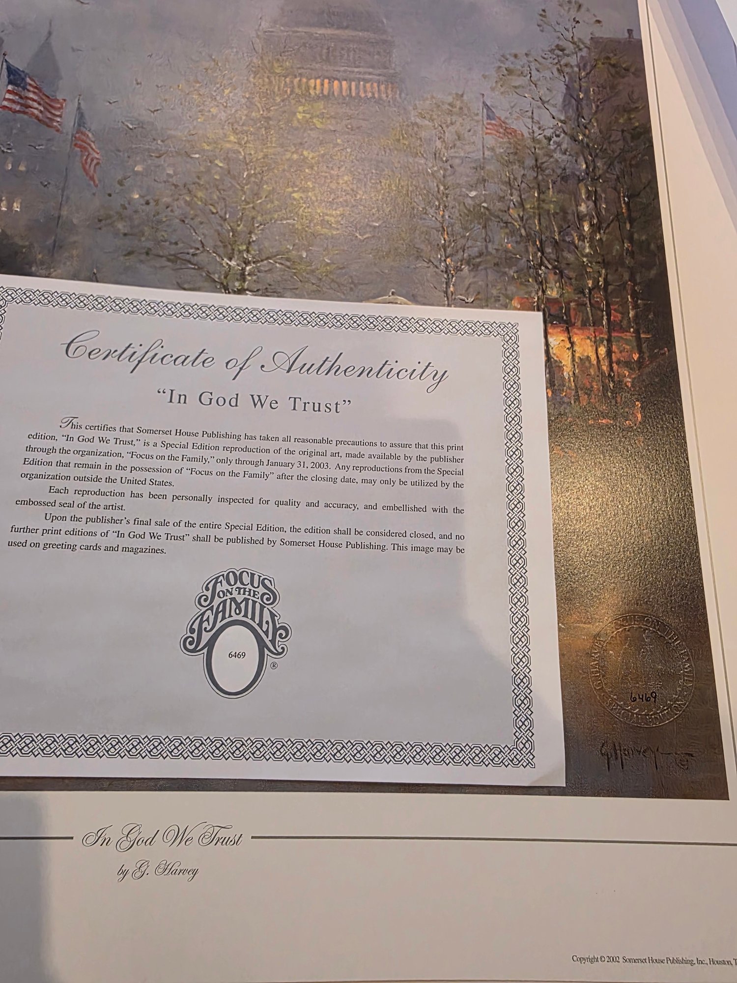 Signed, Embossed, and Numbered. Focus on the Family Special Edition Lithograph with Certificate of Authenticity