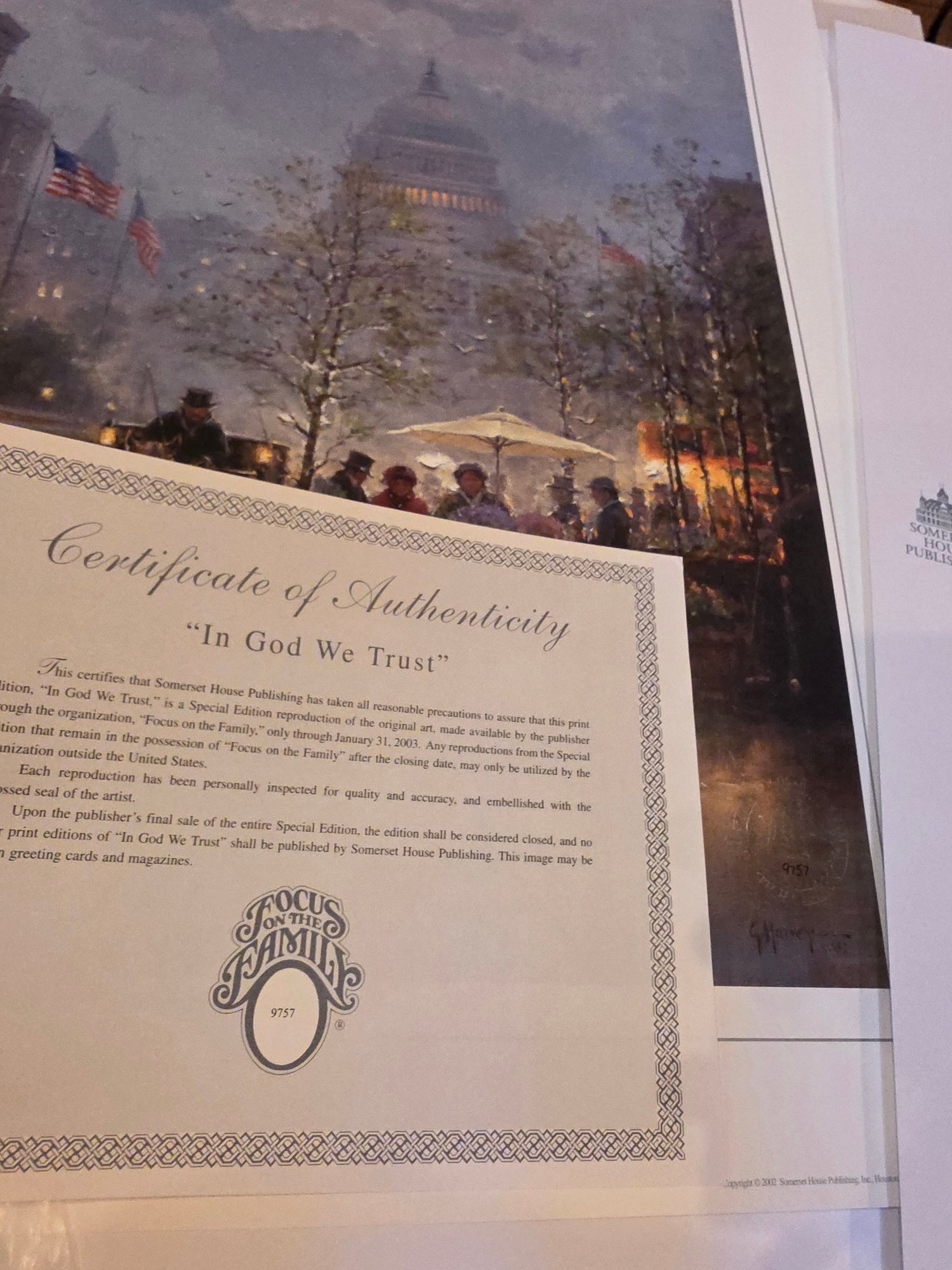 Signed, Embossed, and Numbered. Focus on the Family Special Edition Lithograph with Certificate of Authenticity