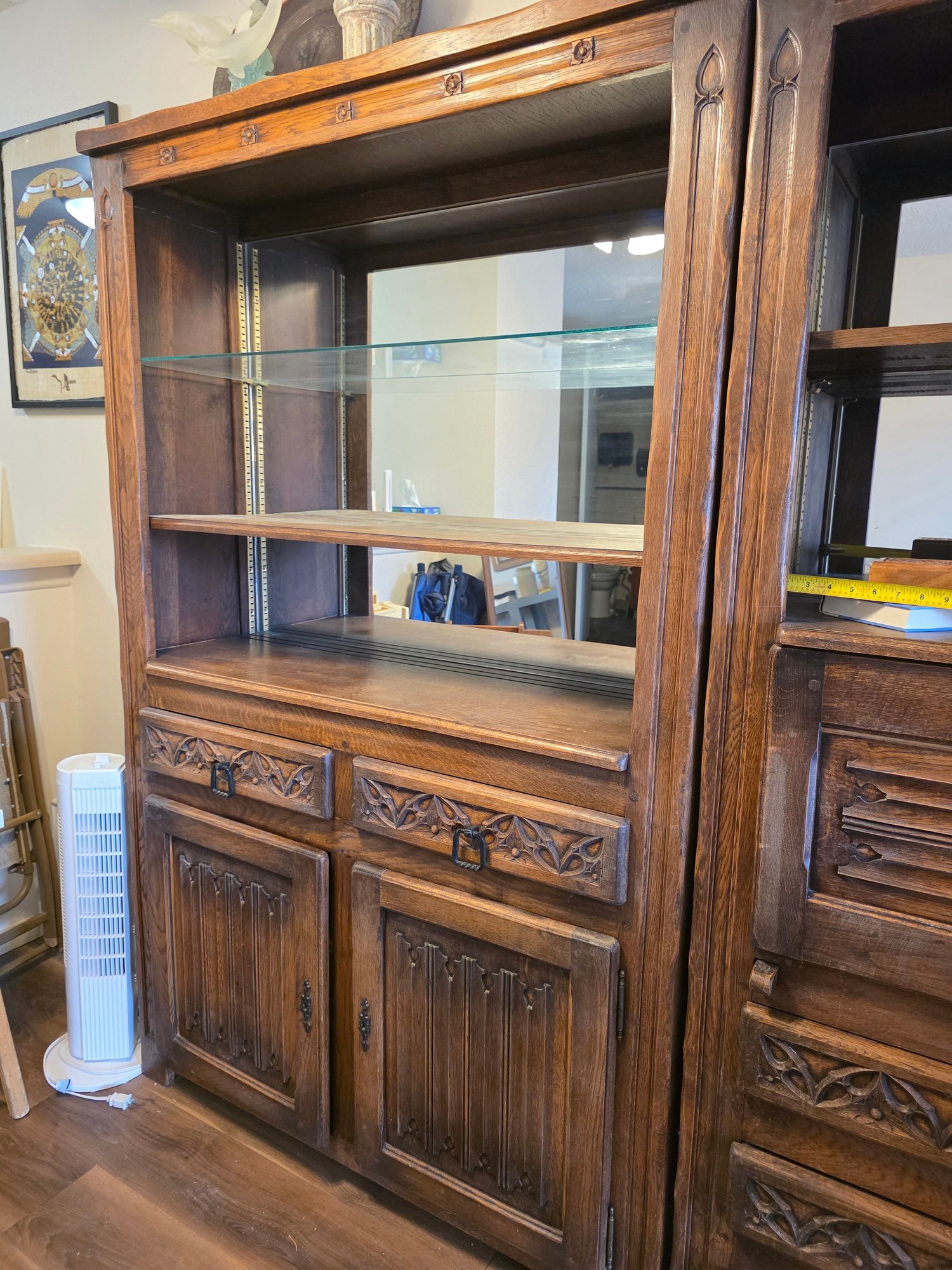 Vintage Wall Unit Section With Mirrored-Back Shelving And Enclosed Cabinet