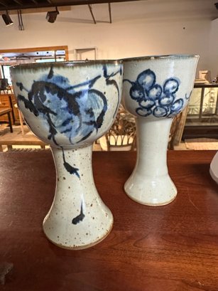 2 Studio Pottery Goblets Or Candle Holders