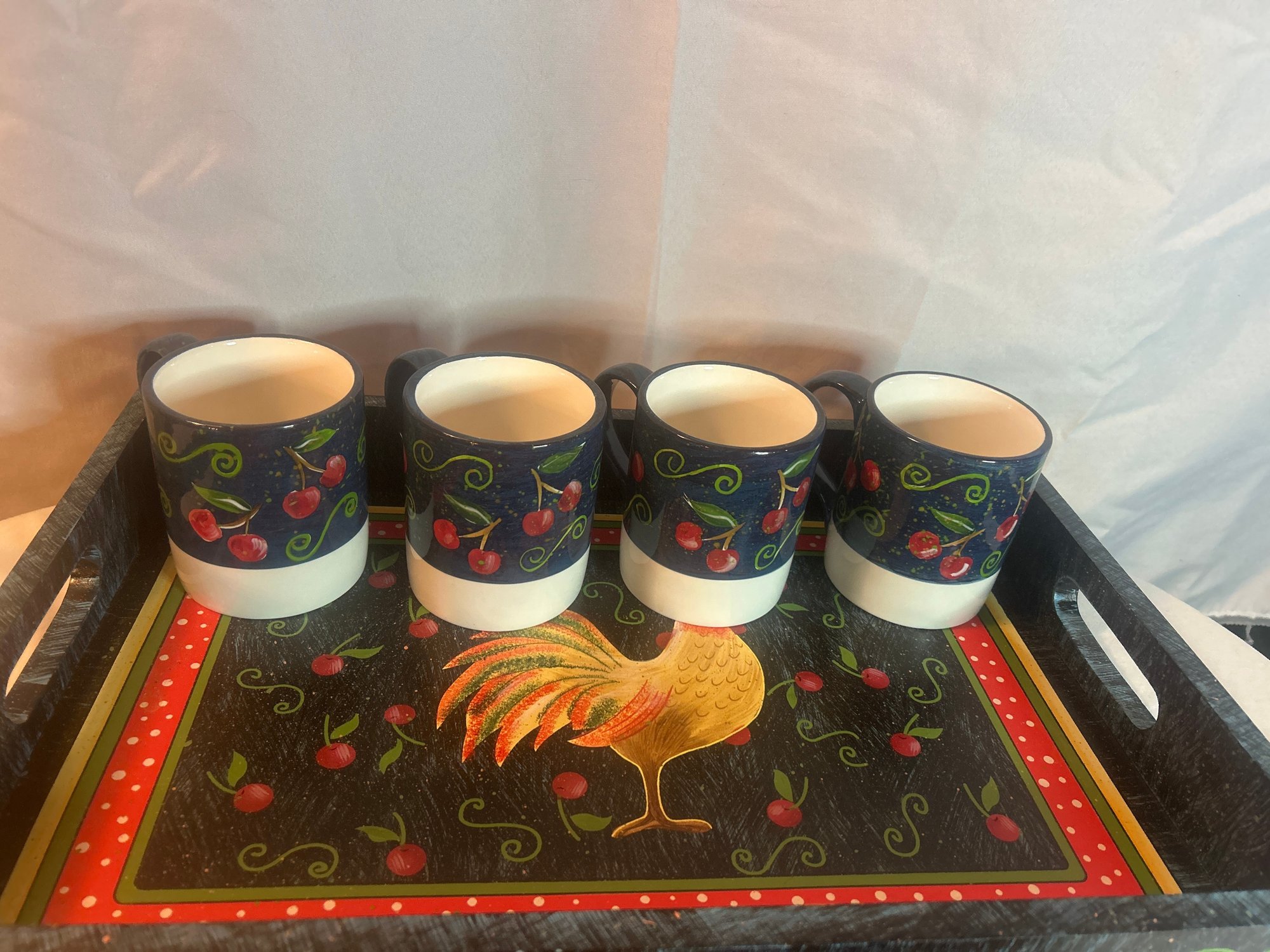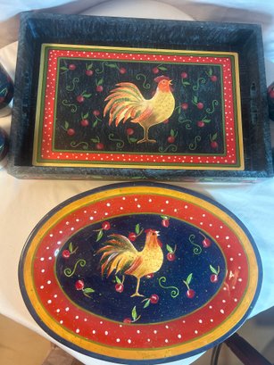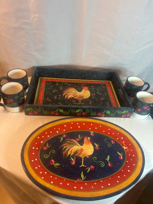 Lot 1: NWT Decorative Serving Set Country Rooster Theme 6 Pieces. tray -18x12 inches plate-16.5x12 inches