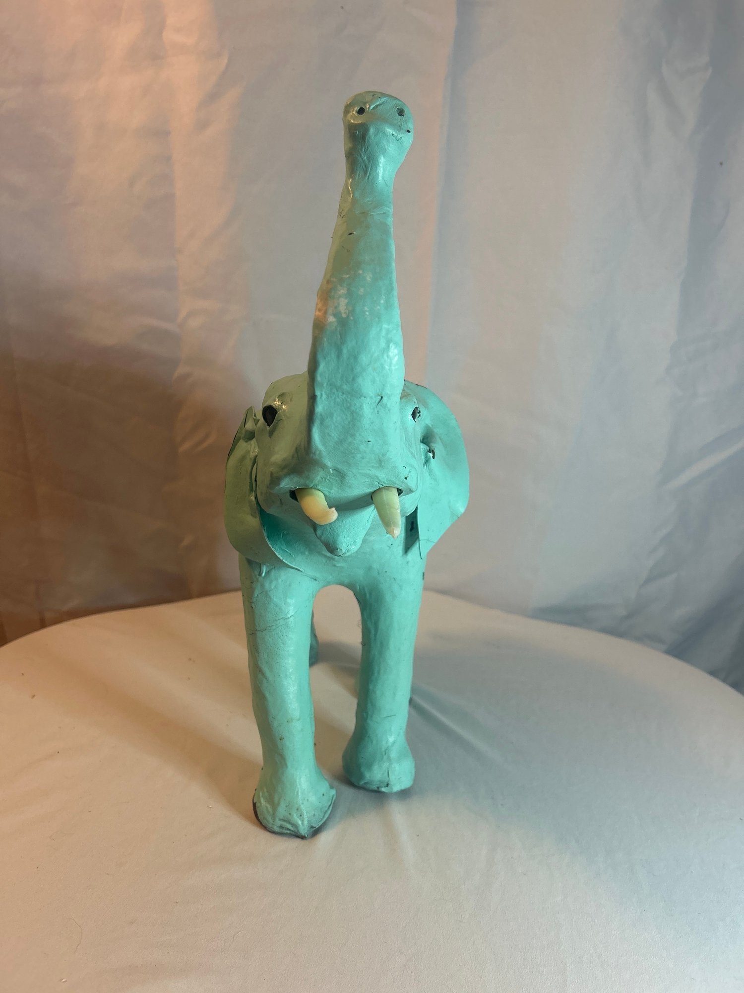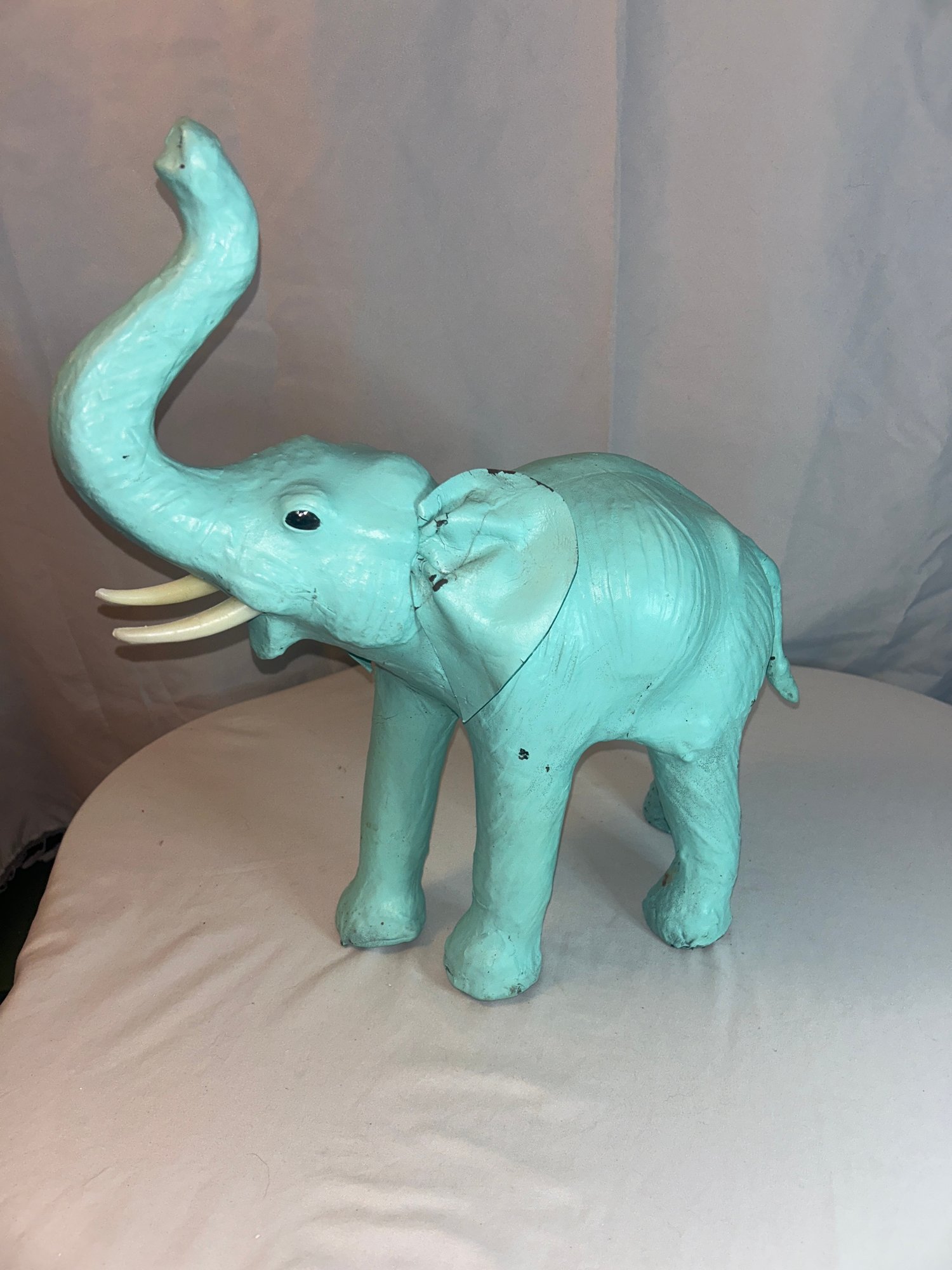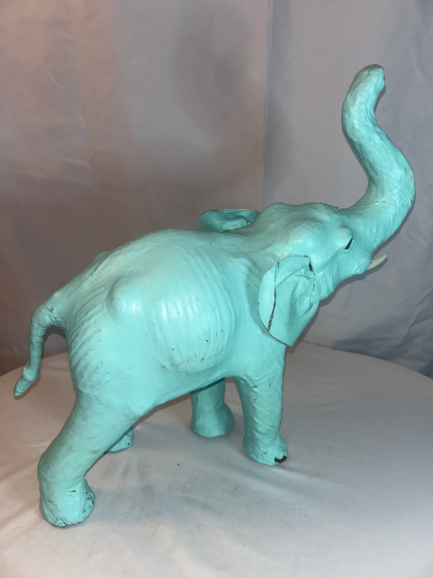 Lot 14: Antique Painted Leather Elephant Statue 16 inches wide by 16 inches tall
