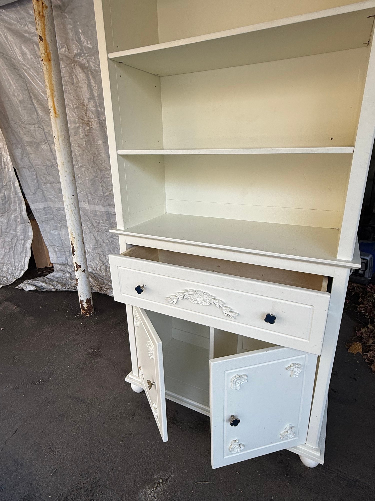 Lot #51: White Hutch. 72” tall, 35” wide, 15” deep. Sold as is.