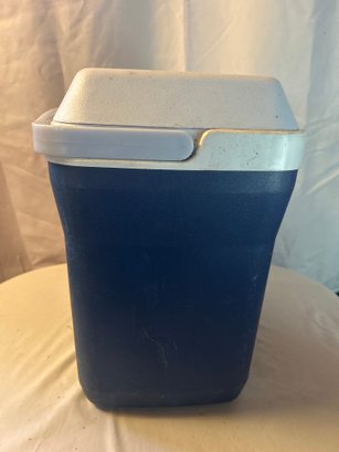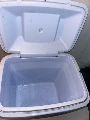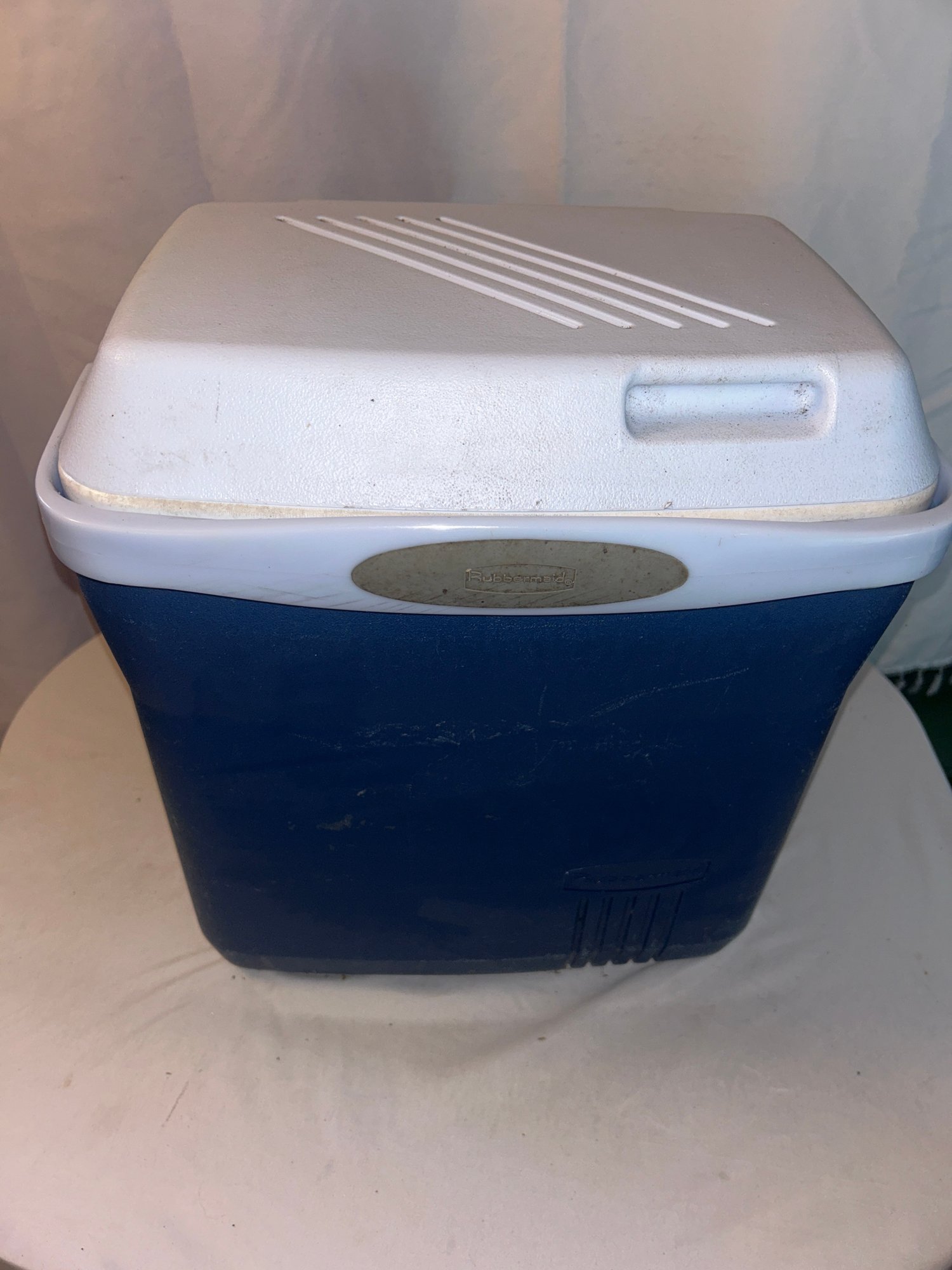 Lot 59: Rubbermaid Cooler With Handle 13 inches tall by 9 inches wide sold as is