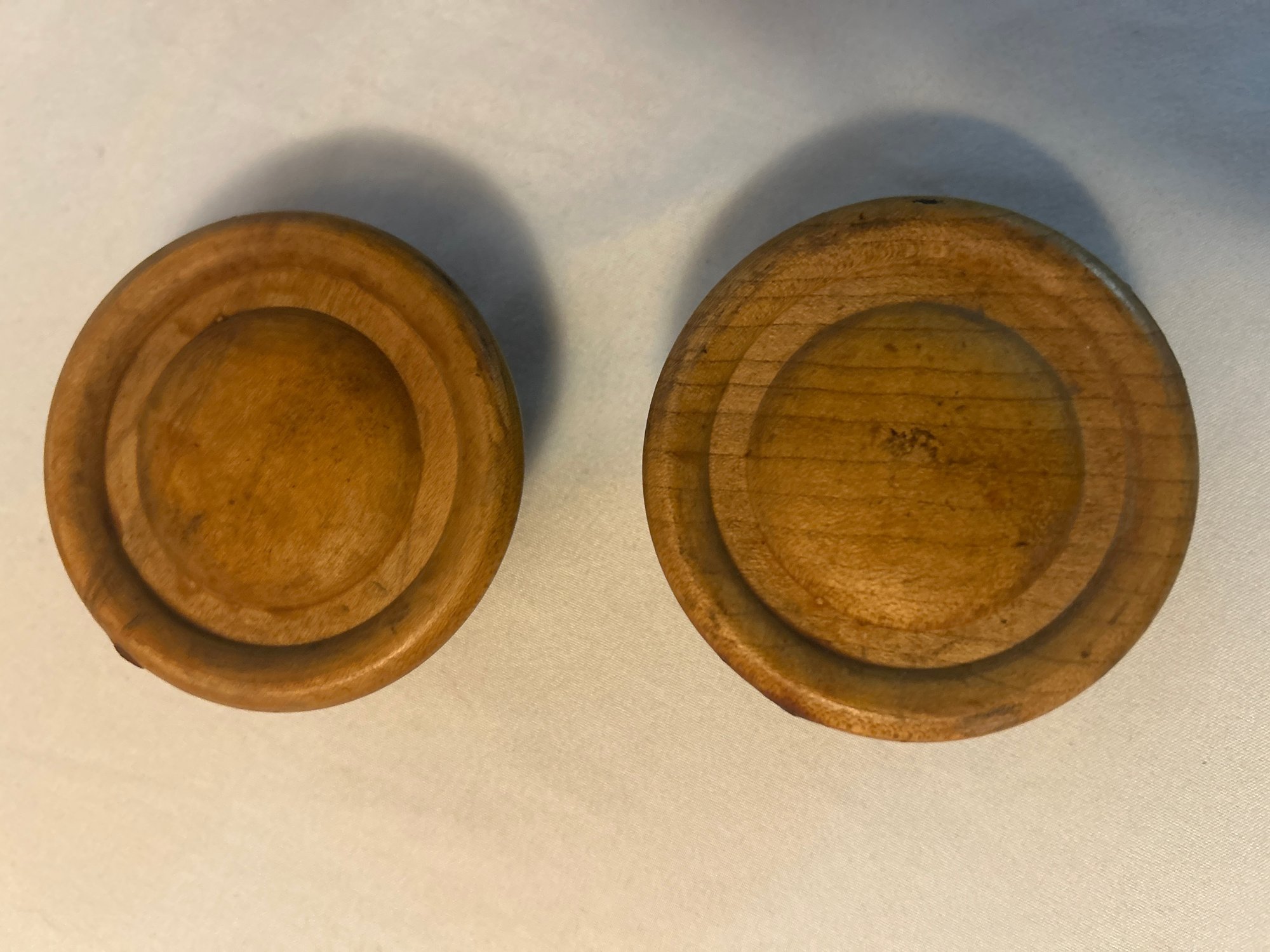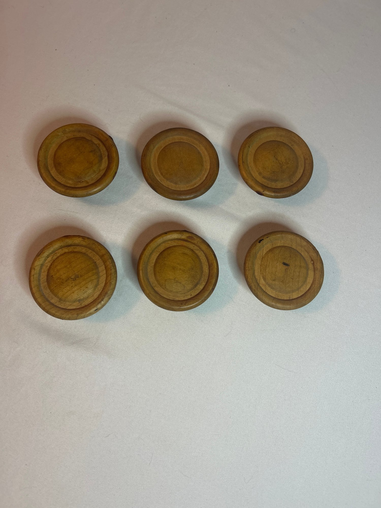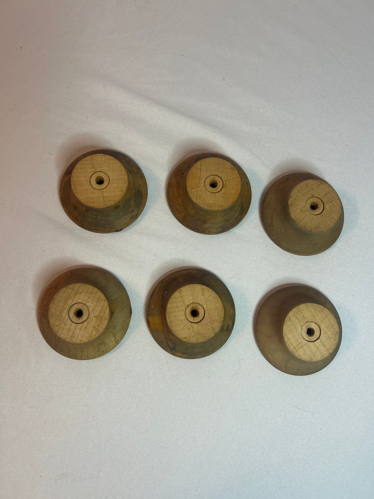 Lot 6: Vintage Solid Wood Furniture Knobs, one hole, 2.5 round, sold as is