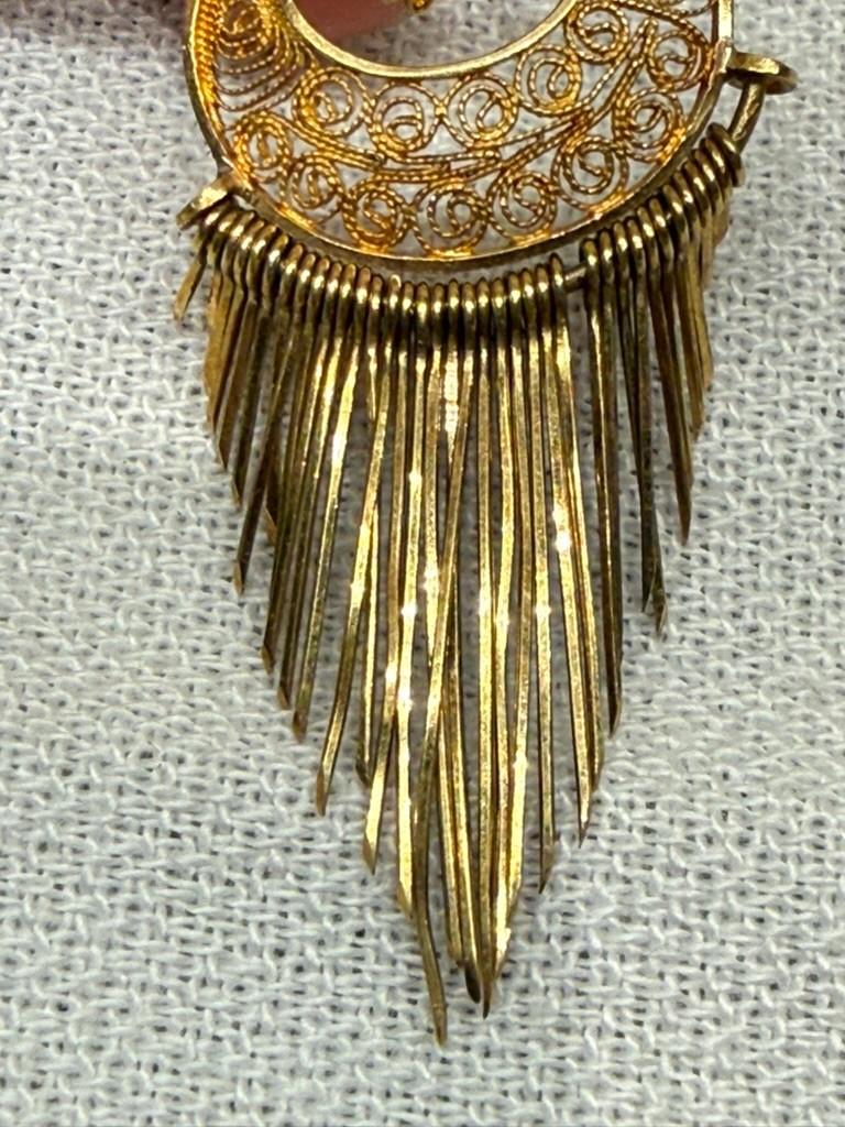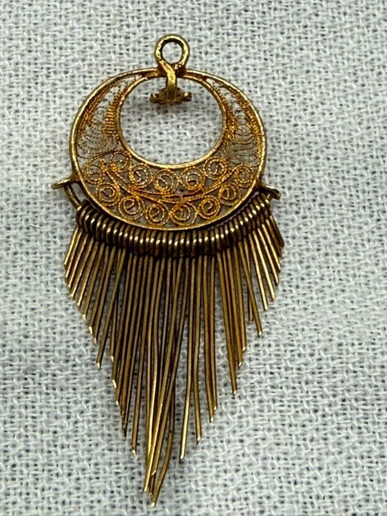 Antique gold fillagree fringed necklace pendant/or dangle part of an earring. Found in an old jewelry box with no other info. It appears to be in overall good condition with slight bends in metal. Please make sure to look at pics closely!