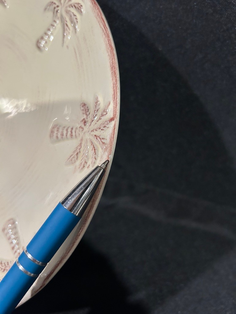 Notes: there is one very tiny chip on one of the rims of the plate, as shown in pics with pen point. As well as light scratching, just basic normal ware