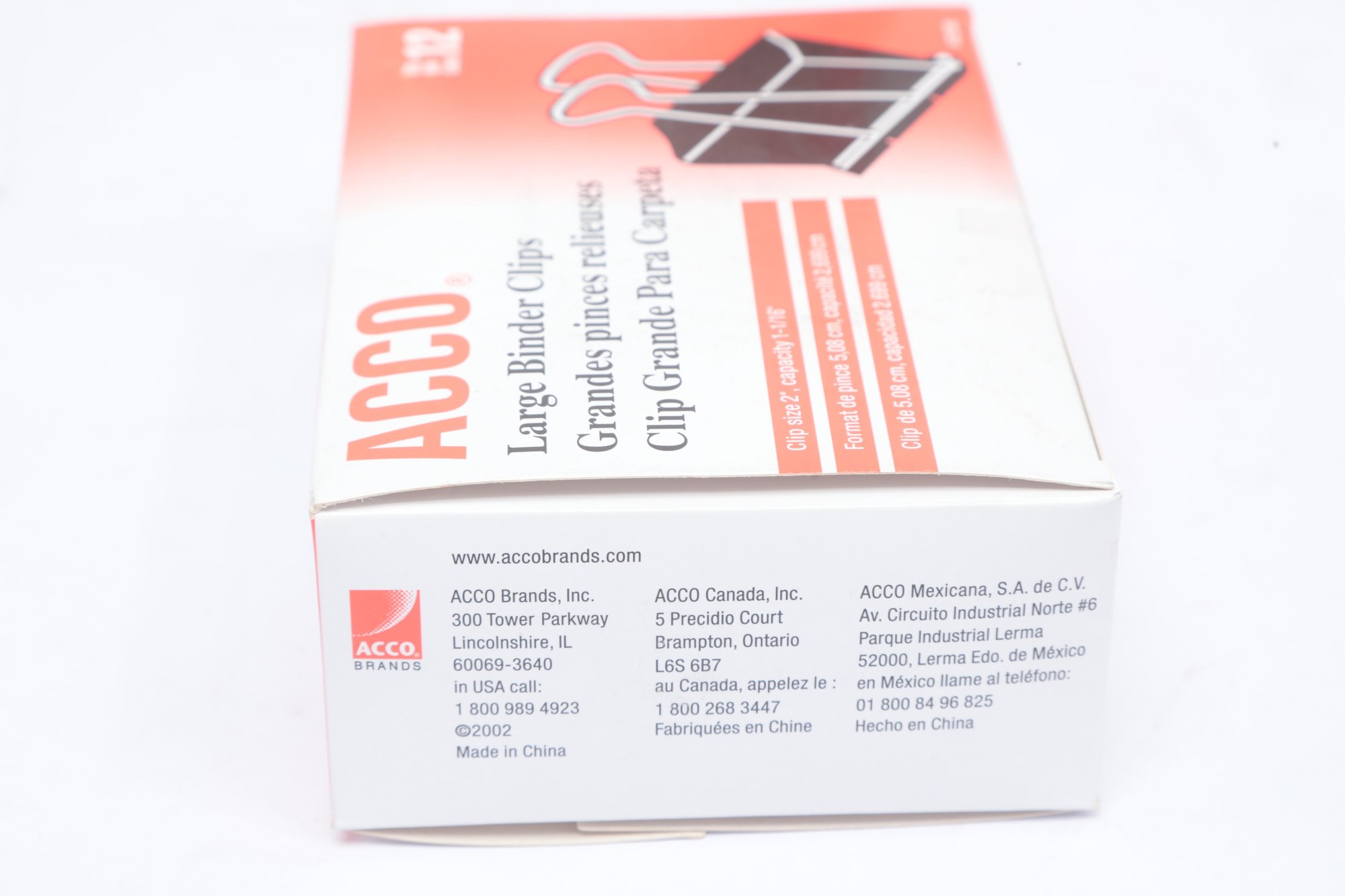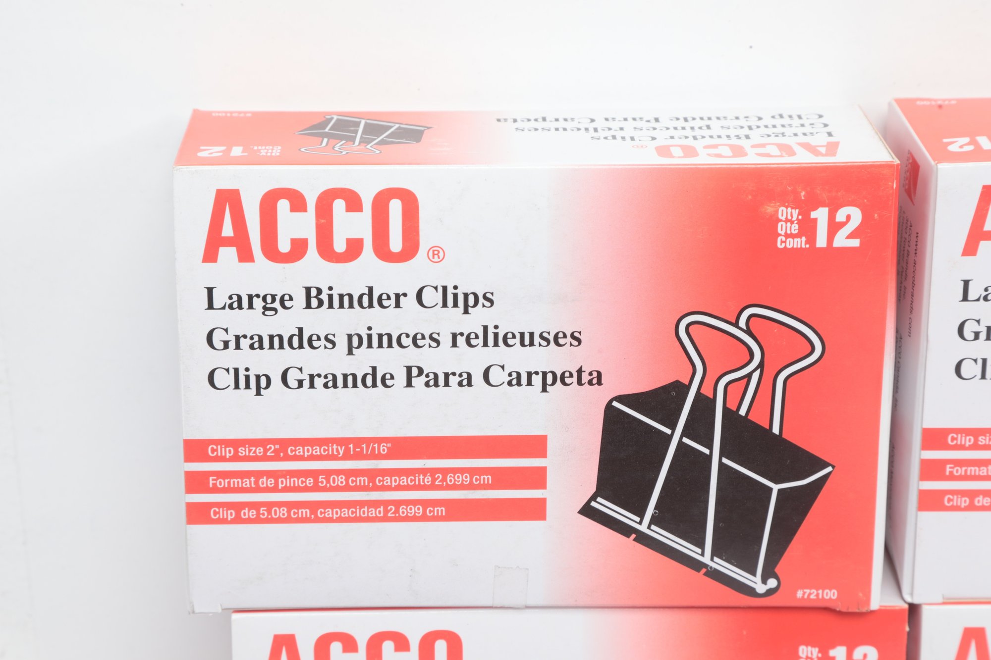 10 New Boxes Acco Large Binder 2" Clips. Boxes may have wear or tear from storage. See pictures carefully for details on contents and condition.