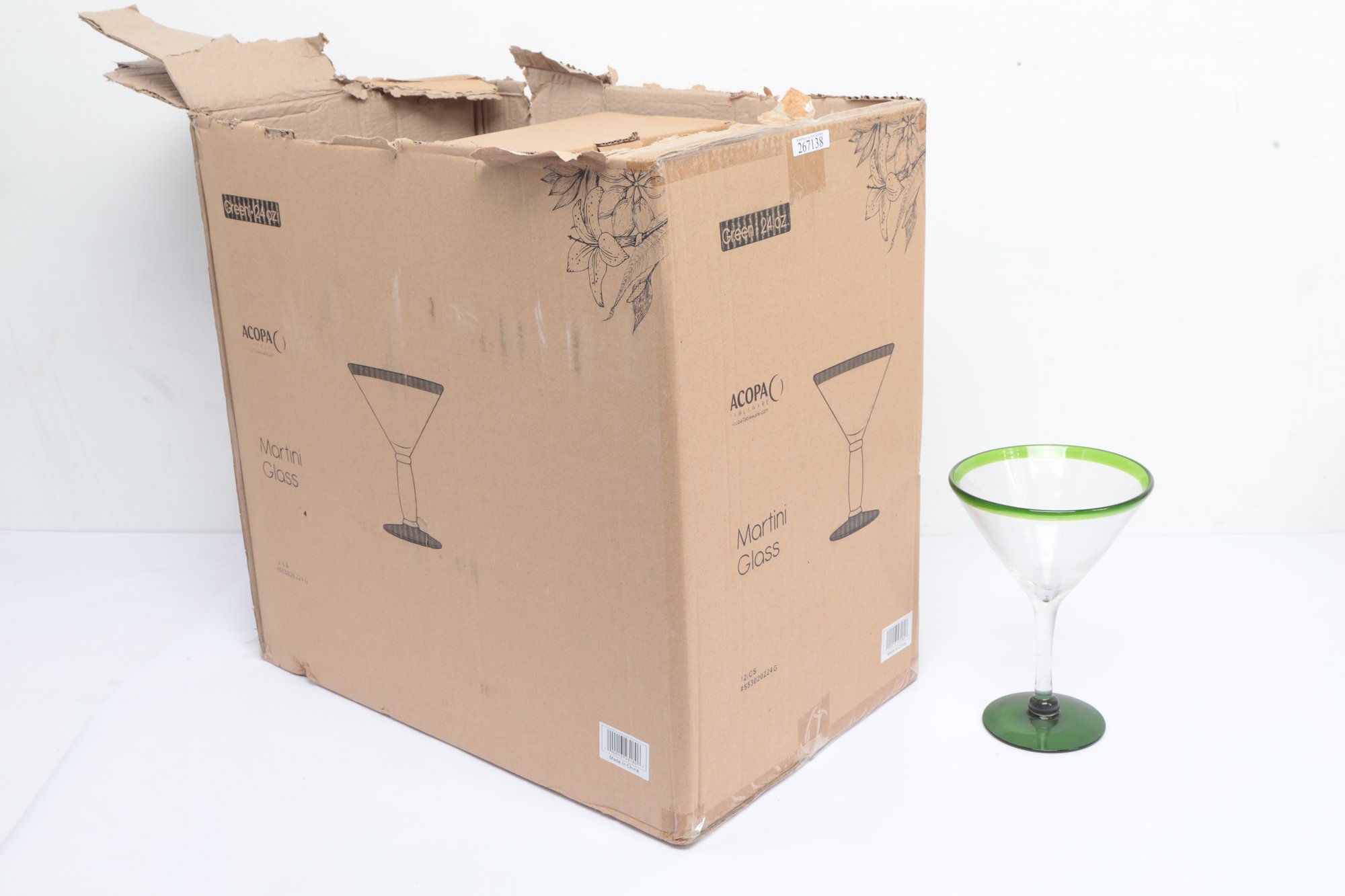 11pc Acopa 24oz Green Martini Glasses. Glasses appear unused. See pictures carefully for details.