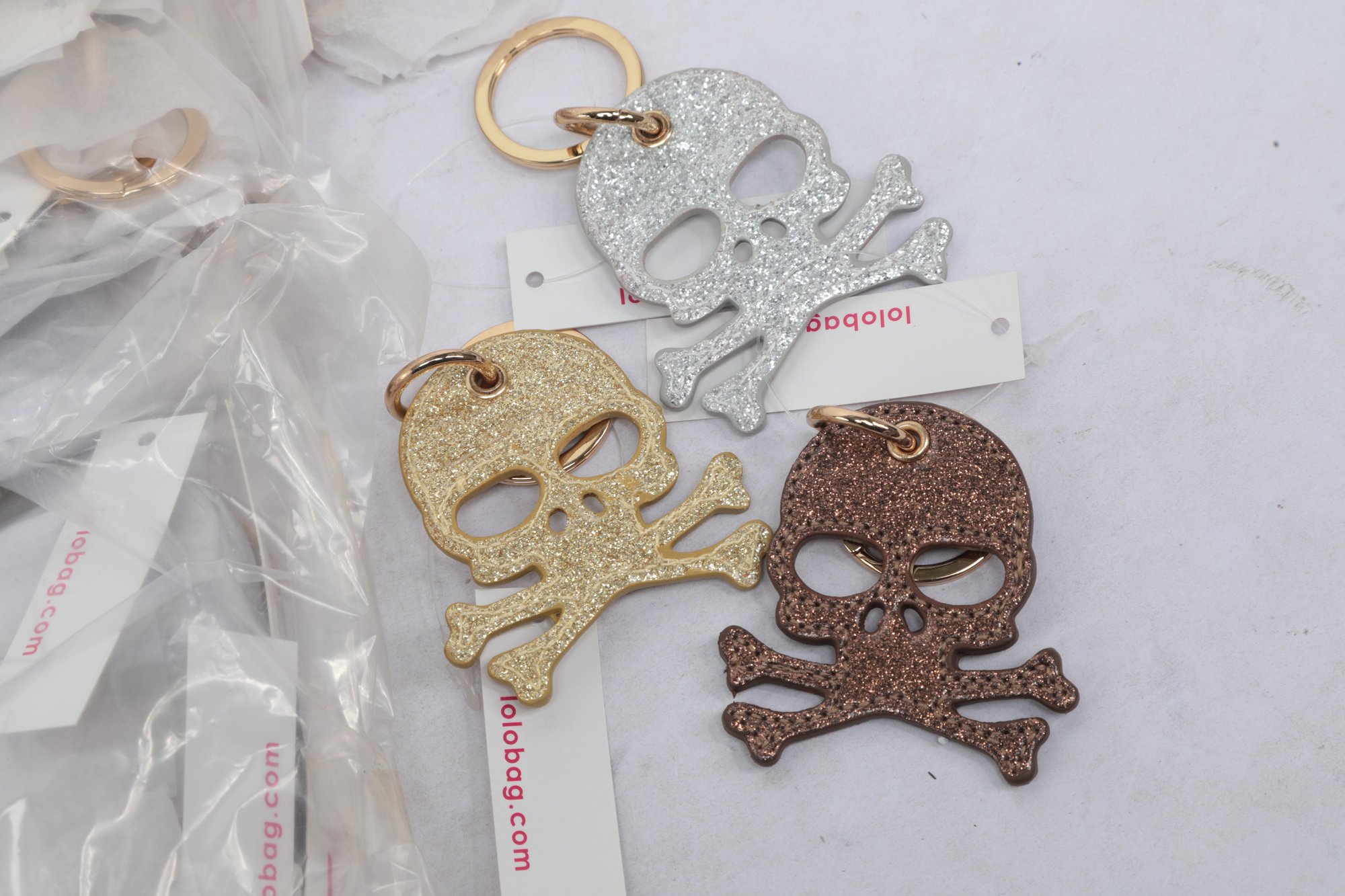 12 Dozen NWT LOLO Glitter Skull Keychains