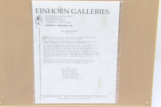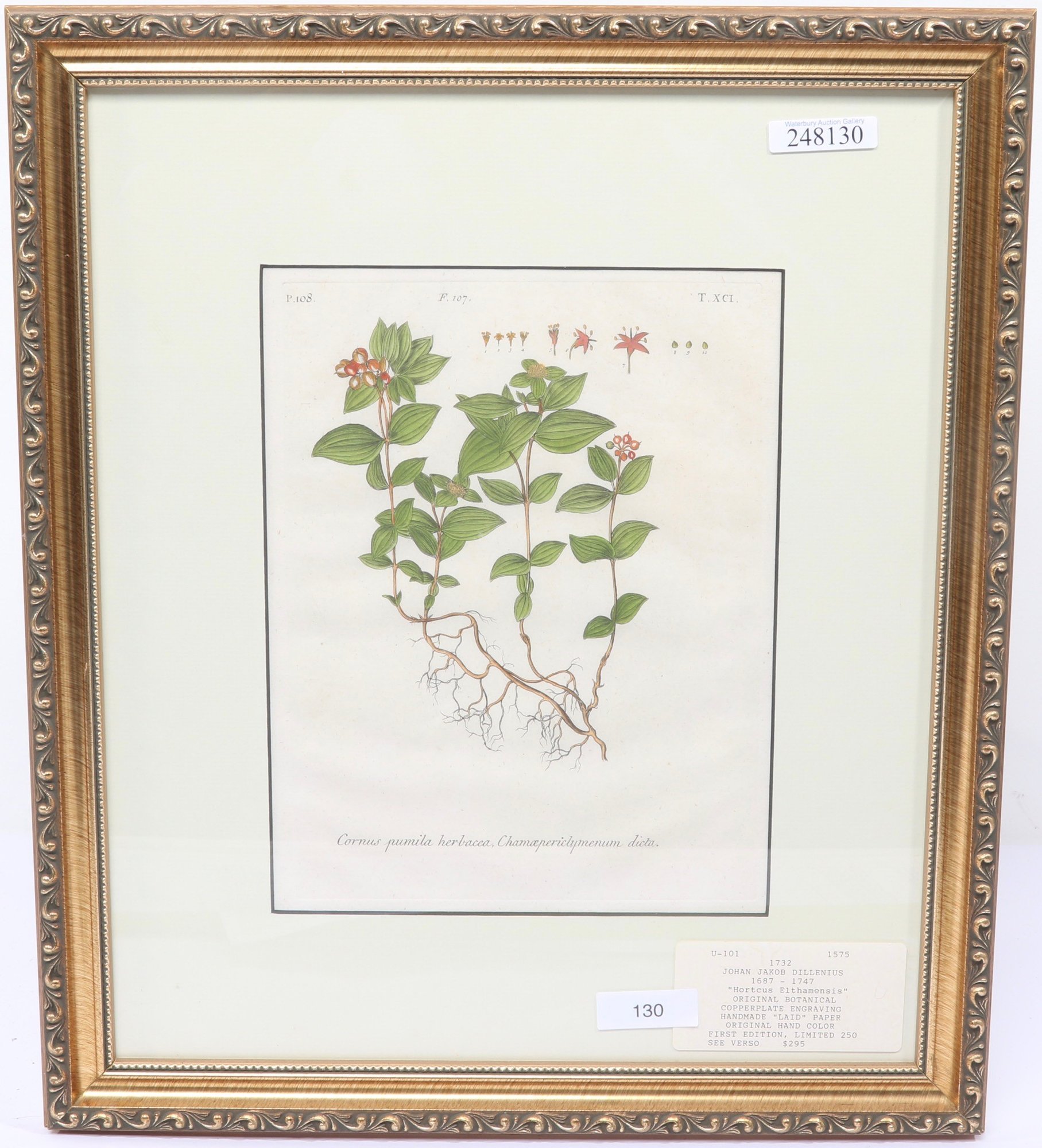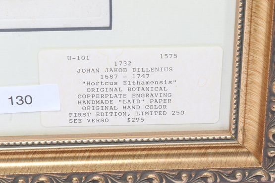 Johan Jakob Dillenius 1687-1747 Hortcus Elthamensis 1732 Original Botanical First Edition Copper plate Engraving hand colored on handmade laid paper.